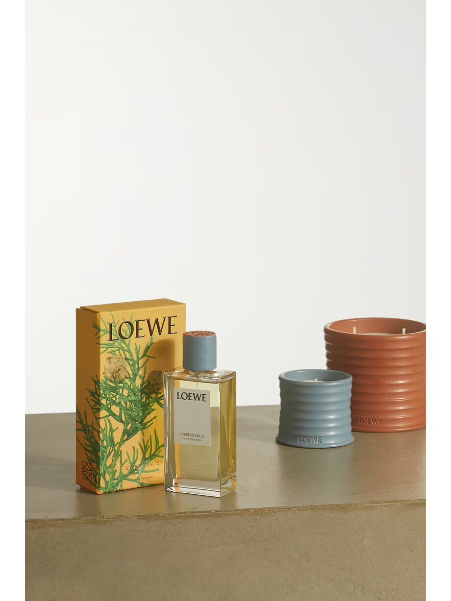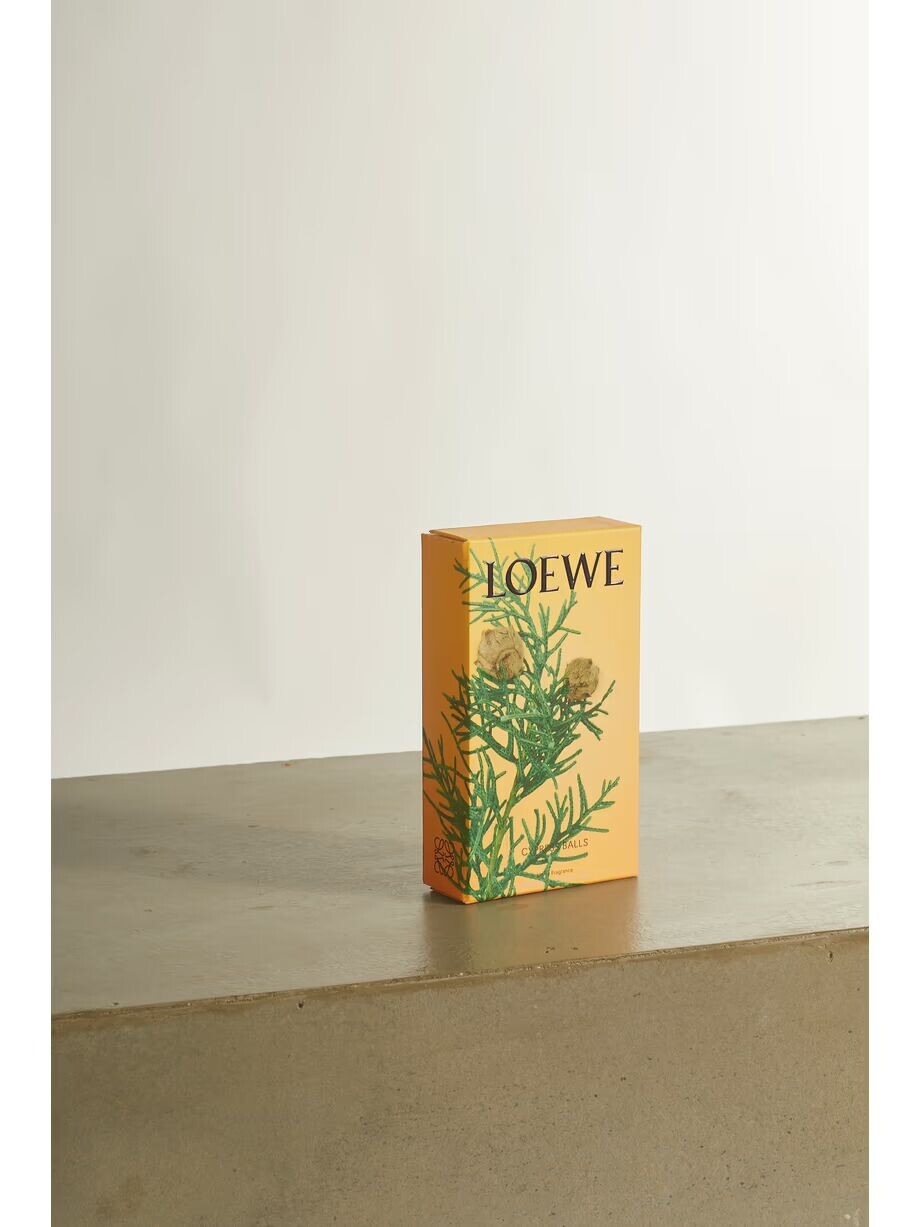 «Аутентичный и чистый» аромат аромата Cypress Balls от LOEWE Home Scents, разработанный Джонатаном Андерсоном совместно с парфюмером Нурией Круэльес, создан под влиянием сферических семян крупных хвойных деревьев с ароматной листвой. Он помещен в стеклянный контейнер с хлопковой этикеткой. В нашу редакцию также входит [соответствующая свеча].