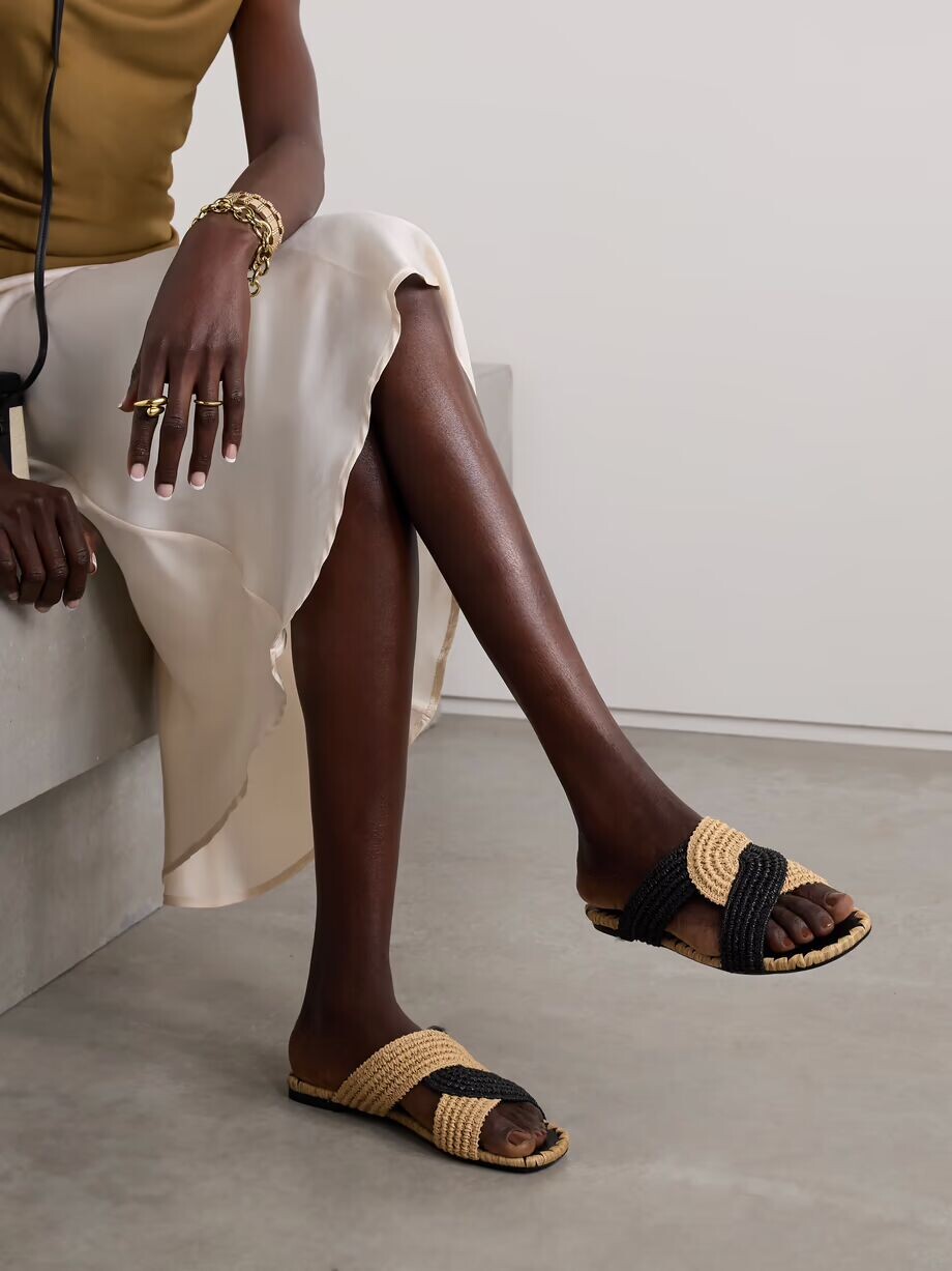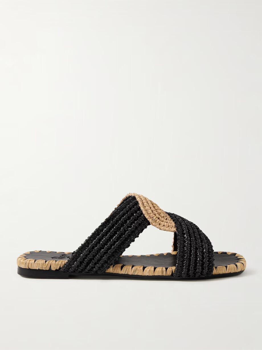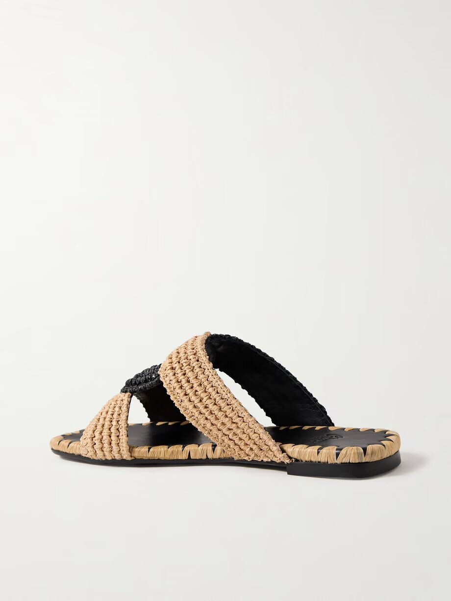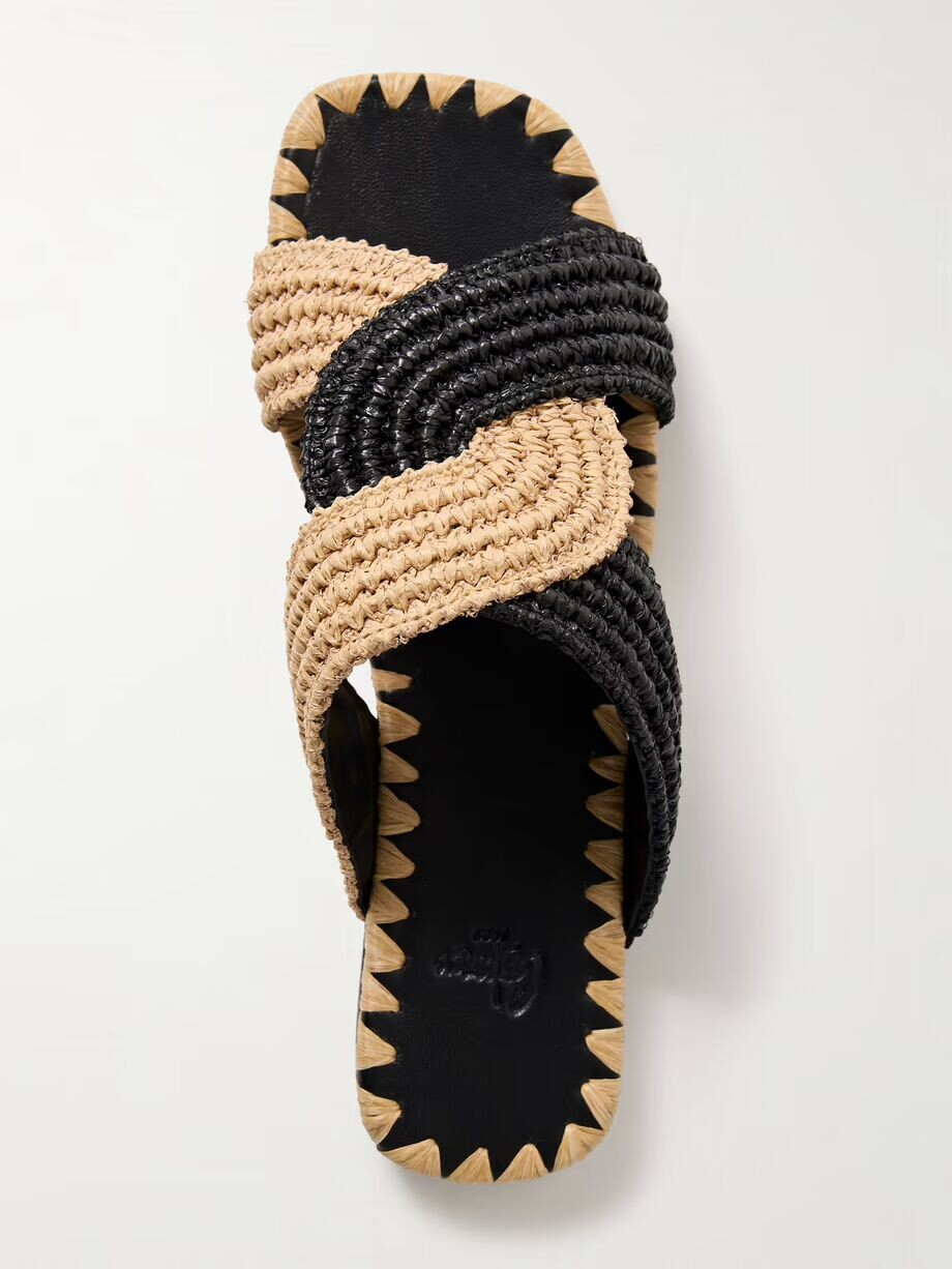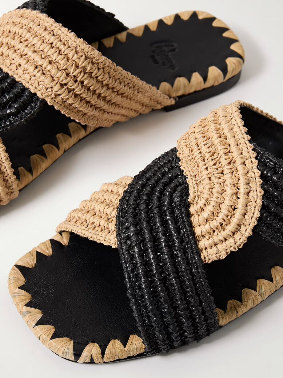 На протяжении последних 90 лет Castañer сохраняет три основные ценности: традиции, мастерство и натуральные материалы. Эти шлепанцы Prado сотканны вручную из рафии, имеют переплетающиеся бретели и квадратные носки.