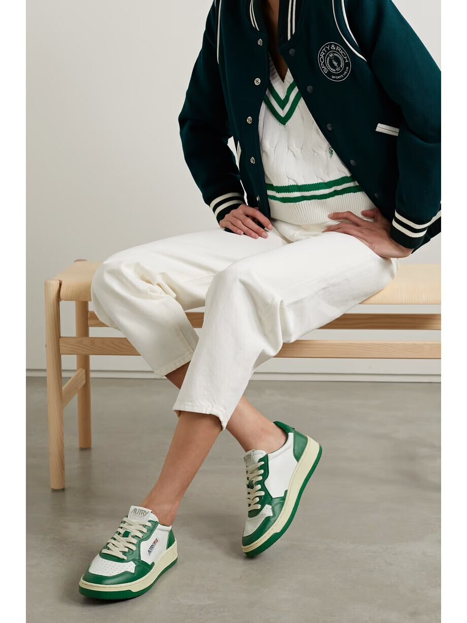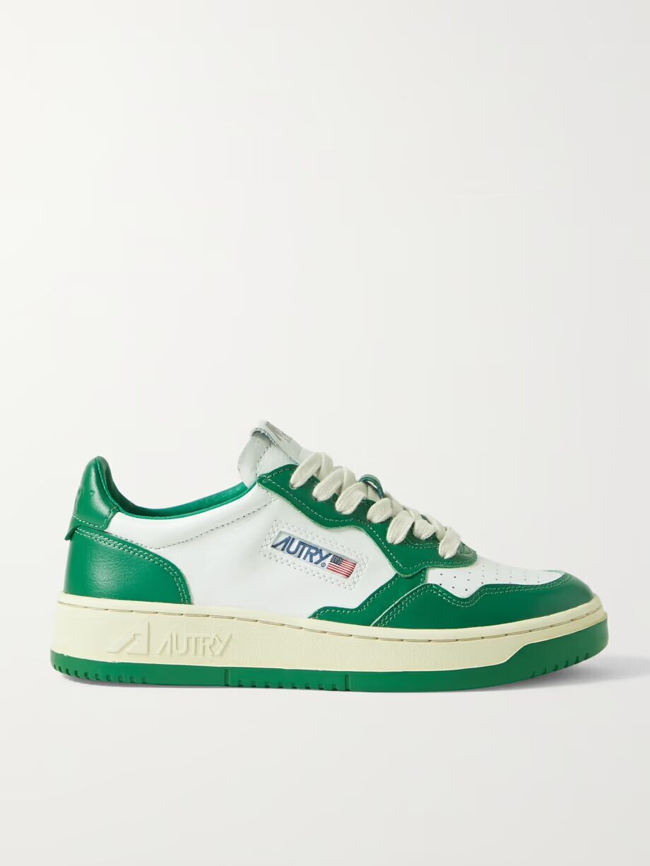 Компания Autry была основана в 1982 году и перезапущена в 2019 году группой друзей, которые были поклонниками лейбла. Эти кроссовки Medalist Low, представляющие собой переиздание архивного стиля, выполнены из кожи кремово-белого и зеленого цвета. Они на мягкой махровой подкладке и украшены фирменными американскими флагами.
