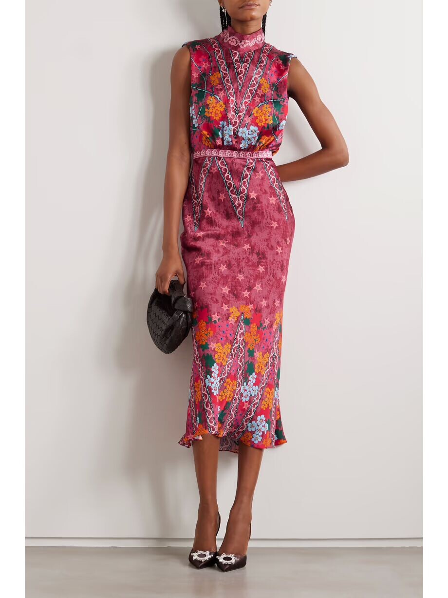 Платье миди из шелкового крепа с принтом Fleur Saloni, цвет Plum