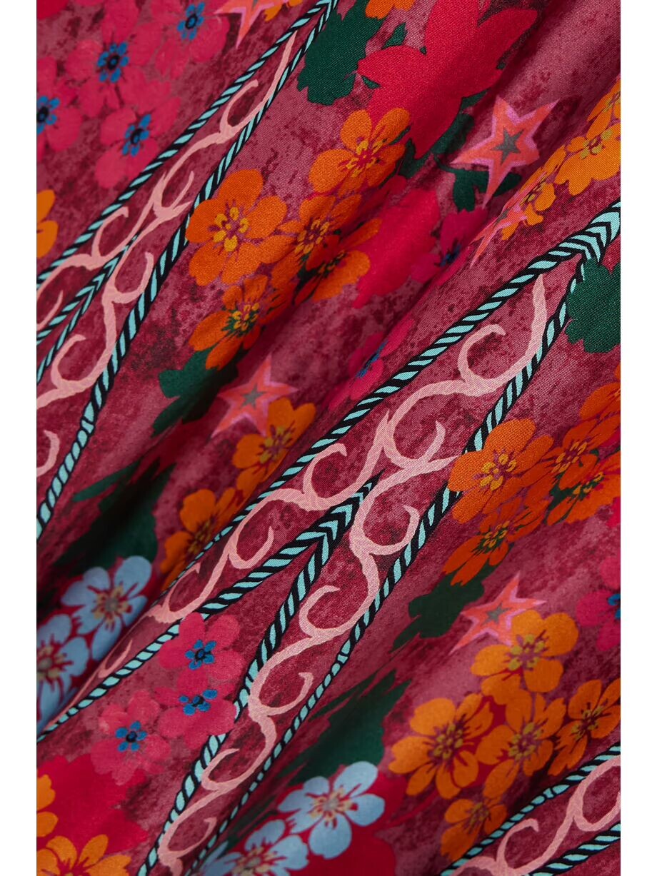 - Разноцветный шелковый креп - Завязки, потайные крючки и молния сзади - 100% шелк; подкладка: 100% полиэстер - Химчистка - Цвет дизайна: Hibiscus Flourish