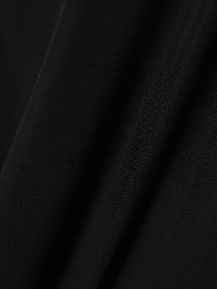 – Черный эластичный трикотаж – Застежки-кнопки внизу – 73 % полиамид, 27 % эластан – Машинная стирка или химчистка