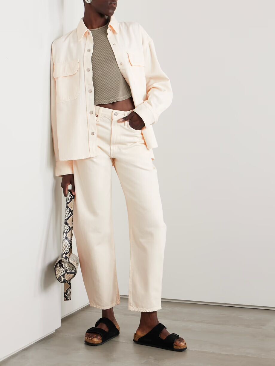 Рубашка Gwen Slice от AGOLDE изготовлена ​​из джинсовой ткани с большим количеством органического хлопка и лиоцелла Refibra, что придает ей мягкую и уютную ручку. Он имеет классический заостренный воротник и нагрудные карманы. Он особенно круто смотрится с джинсами лейбла того же цвета «Печенье с предсказанием».