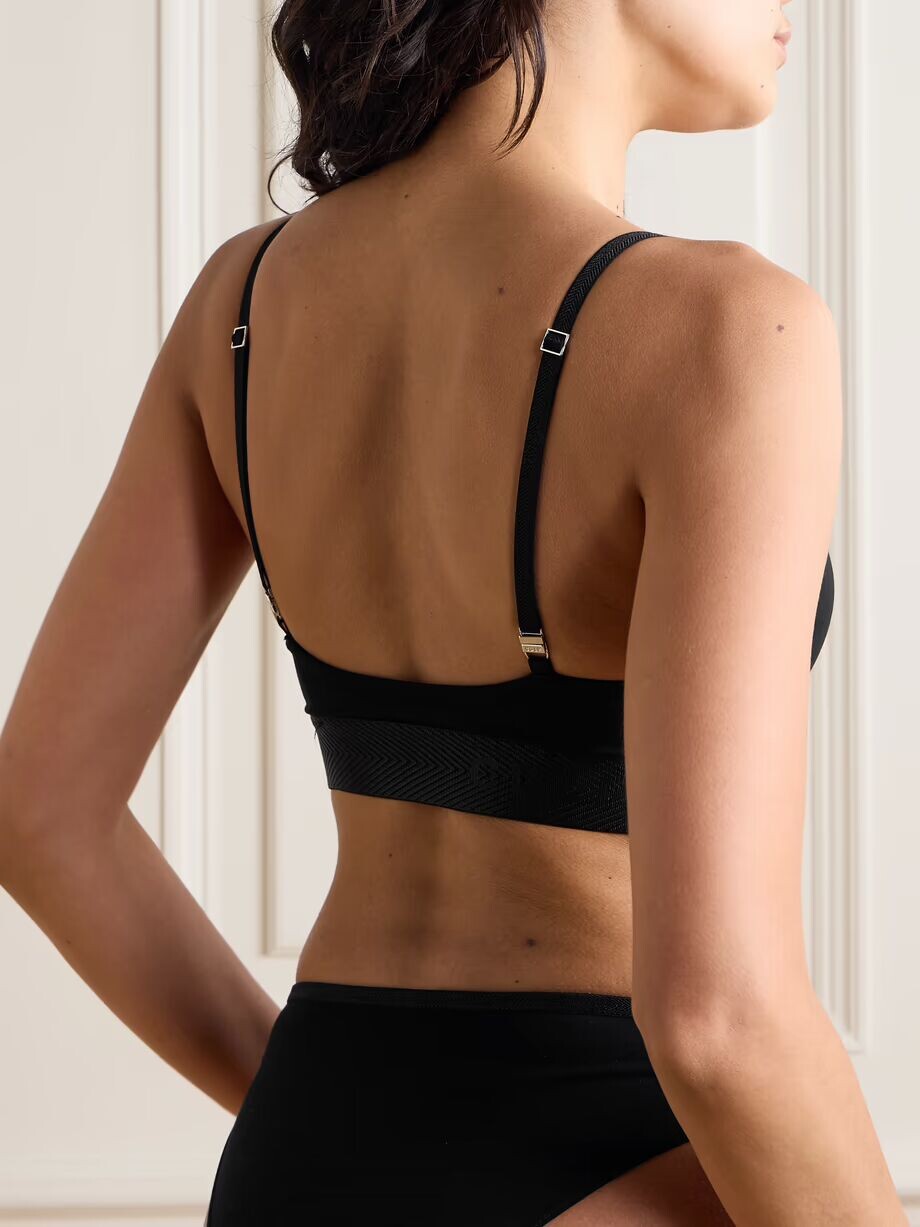 Бюстгальтер без косточек CDLP обеспечивает легкую поддержку для комфортного повседневного ношения. Модель изготовлена ​​из двух слоев мягкого трикотажа с добавлением лиоцелла и имеет широкую нижнюю полосу с узором «елочка» и регулируемые бретели, которые также можно перекрещивать на спине.