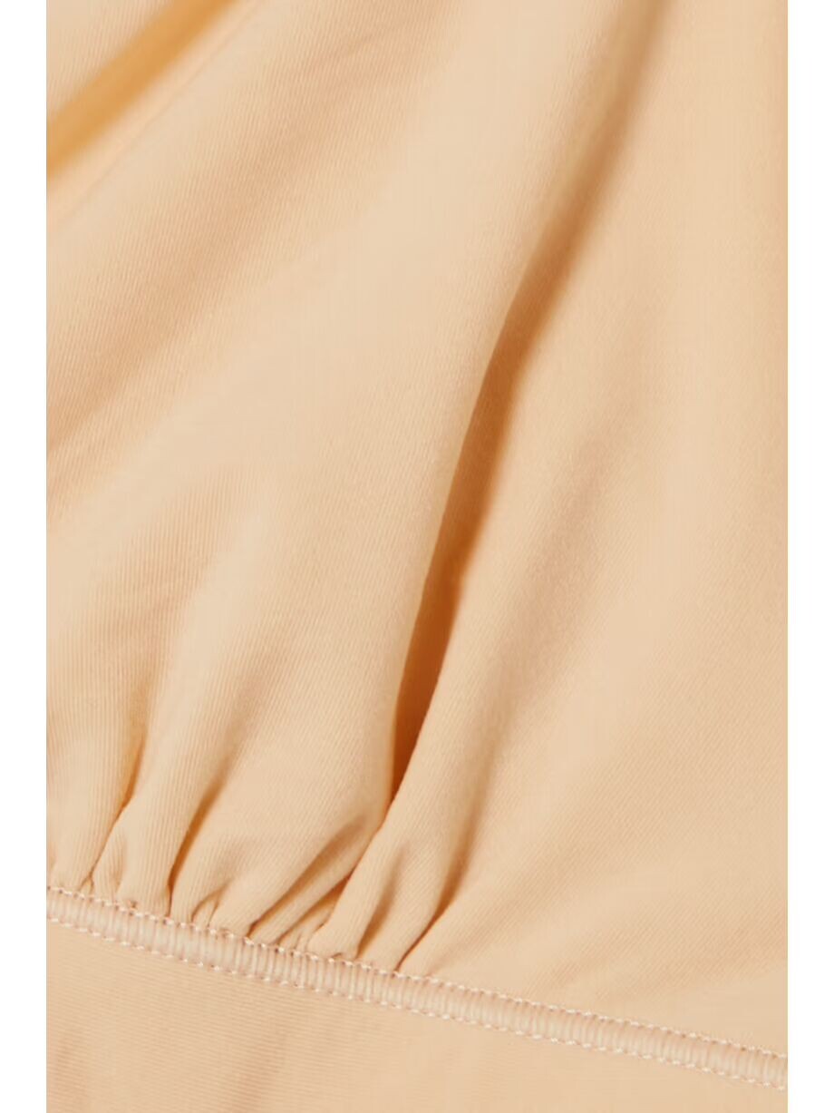 – Нейлон песочного стретч – Застежка на крючки сзади – 79 % нейлон, 21 % спандекс – Машинная стирка
