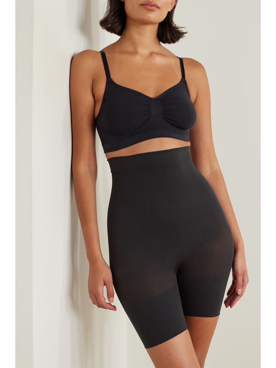 Коллекция SKIMS «Seamless Sculpt» популярна не зря: эластичная ткань обеспечивает сильный, целенаправленный контроль и сжатие, но при этом обеспечивает комфорт. Они на 41 % состоят из переработанных волокон, дополнены силиконовой нижней лентой, предотвращающей скатывание, и имеют открытую ластовицу.