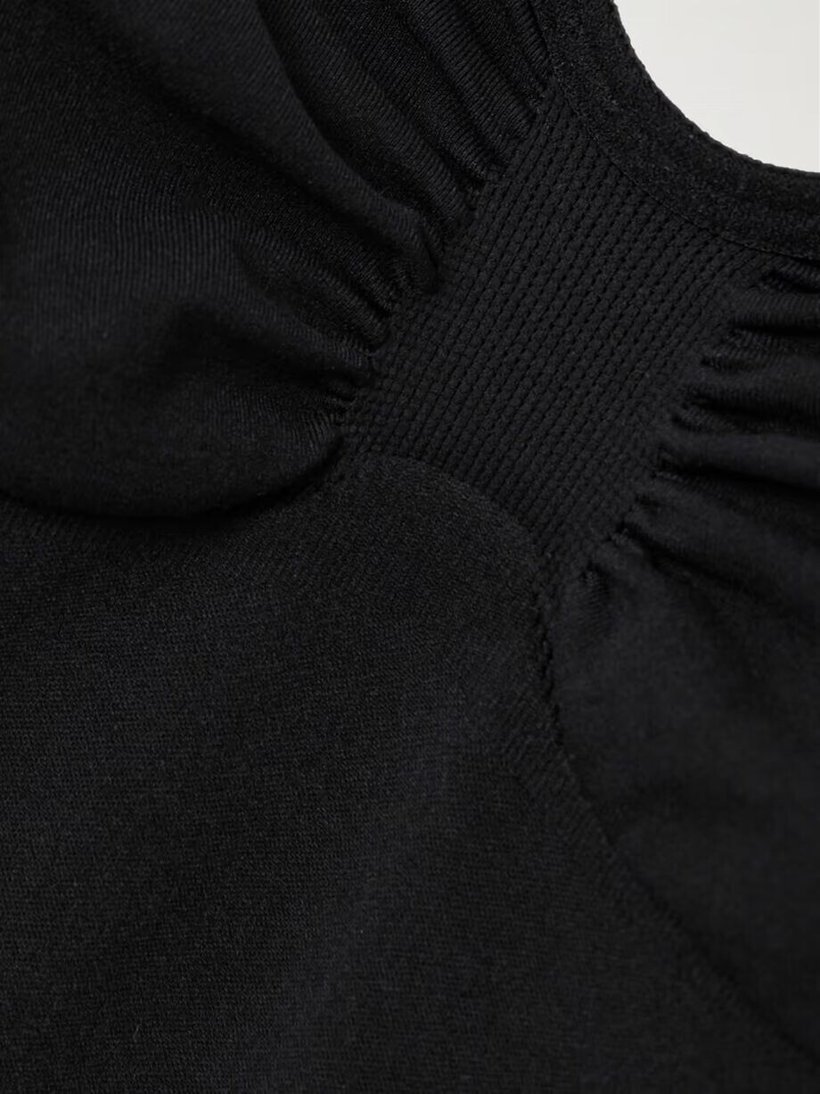 – Эластичный нейлон оникс – Застежки-кнопки у основания – 41 % переработанный нейлон, 41 % нейлон, 18 % эластан – Машинная стирка