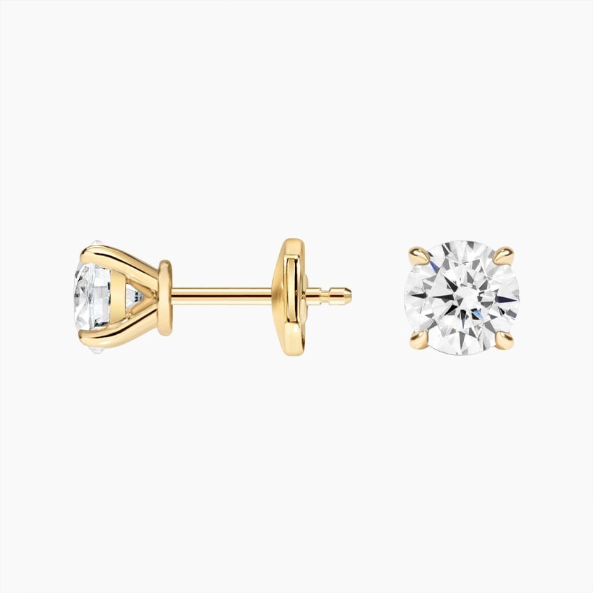 Гладкие зубцы-когти удерживают сверкающий круглый лабораторный бриллиант в этих классических, но современных серьгах-гвоздиках. Отчет о лабораторной оценке IGI прилагается к каждой паре сережек.
