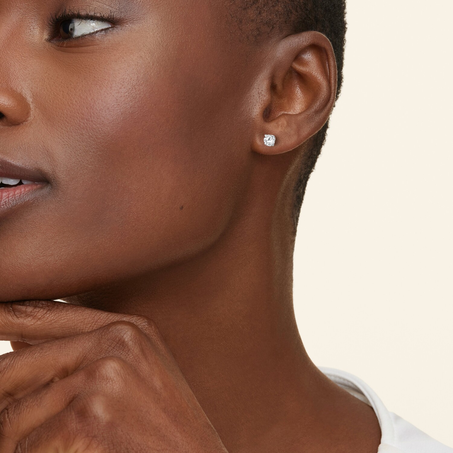 Изящные зубцы-крапаны удерживают сверкающий круглый бриллиант в этих классических, но в то же время современных серьгах-гвоздиках.