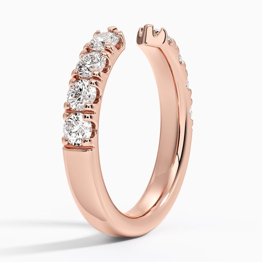 Это открытое кольцо с бриллиантами имеет фестончатые бриллианты паве в элегантно скульптурных зубцах, которые простираются на половину окружности кольца. Открытый дизайн позволяет кольцу сидеть вровень со многими стилями помолвочных колец.