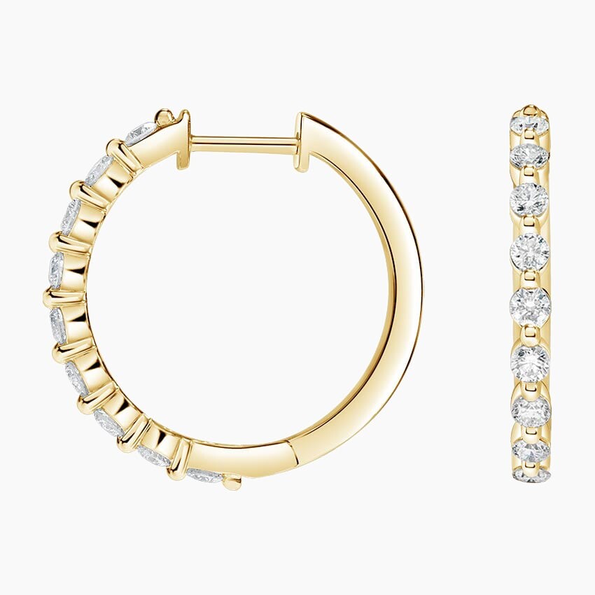 Эти великолепные серьги-кольца, которые выглядят потрясающе и в то же время непринужденно, украшены сверкающими круглыми бриллиантами в изысканной общей крапановой оправе (общий вес 5/8 карата).