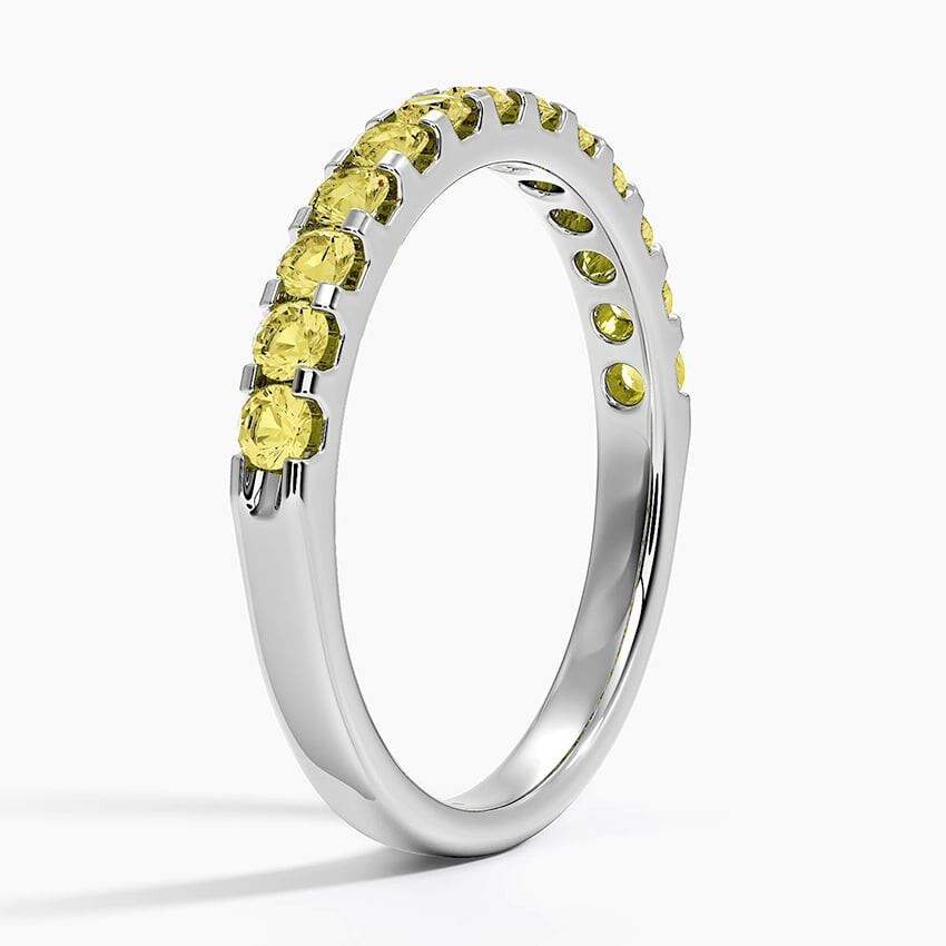 Плавающие общие выращенные в лаборатории желтые бриллианты мерцают по всей окружности этого изящного обручального кольца, придавая ему эффектный вид.