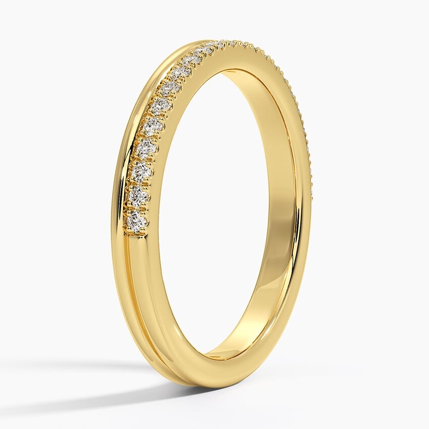 Две полосы драгоценного металла образуют уникальное кольцо в этом современном, трендовом дизайне. Бриллианты украшают одну полосу, в то время как другая остается простой, добавляя идеальное количество блеска (общий вес 1/6 карата).