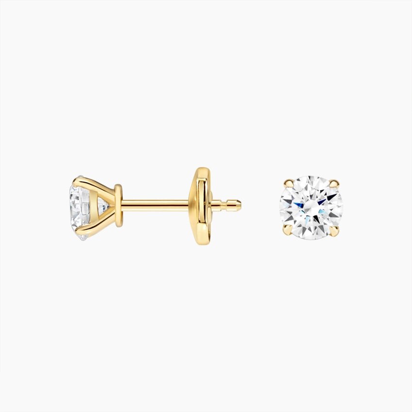 Изящные зубцы-крапаны удерживают сверкающий круглый лабораторный бриллиант в этих классических, но современных серьгах-гвоздиках.