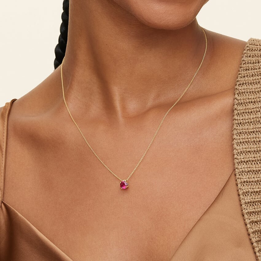 Прекрасный выращенный в лаборатории рубин установлен в этом элегантном стиле подвески, которая плавно скользит по блестящей цепочке. Длина ожерелья может быть отрегулирована до 16 или 18 дюймов в соответствии с индивидуальными предпочтениями.