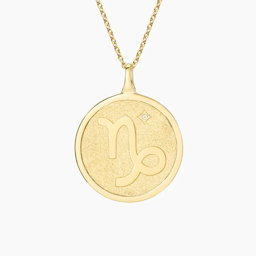 Бренд: Brilliant Earth Морской козел, вытисненный на диске, украшенном тремя звездообразными бриллиантовыми акцентами, наделяет этот медальон и его владельца характеристиками земного знака зодиака Козерог: решительный, дисциплинированный, успешный. Оттиск в символической форме знака Козерог вырезан на текстурированной второй стороне, а один заподлицо установленный бриллиант сияет от передней до задней части, добавляя универсальности этому впечатляющему дизайну. Длина цепочки может быть отрегулирована до 16 или 18 дюймов в соответствии с индивидуальными предпочтениями.