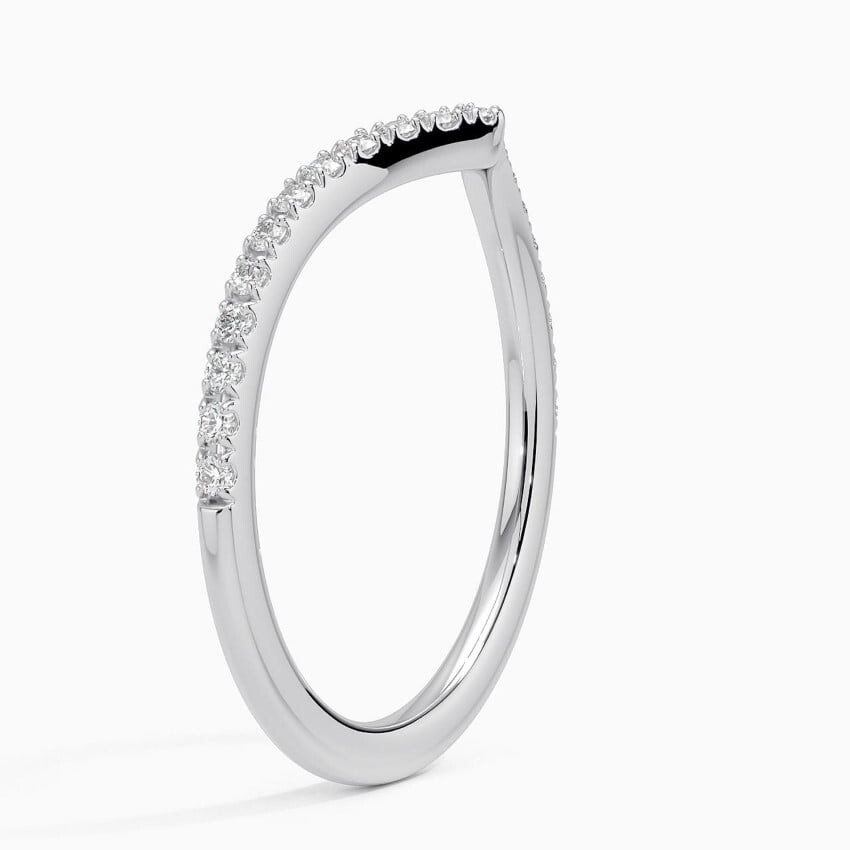 Мерцающие фестончатые бриллианты паве струятся по середине этого кольца, создавая слегка изогнутую форму шеврона. Это стильное кольцо идеально само по себе или в паре с помолвочным кольцом.