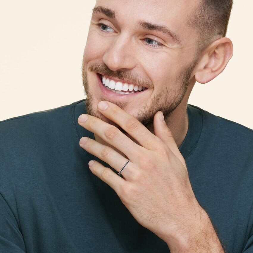 Бренд: Brilliant Earth Это миниатюрное бриллиантовое кольцо имеет фестончатые черные бриллианты в элегантно скульптурных зубцах, которые простираются на три четверти окружности кольца, оставляя небольшую размерную полоску сзади. Это прекрасное дополнение ко многим нежным обручальным кольцам. Это самое любимое изделие демонстрирует лучшее и самое яркое в моде и дизайне и любимо дизайнерами и клиентами Brilliant Earth.