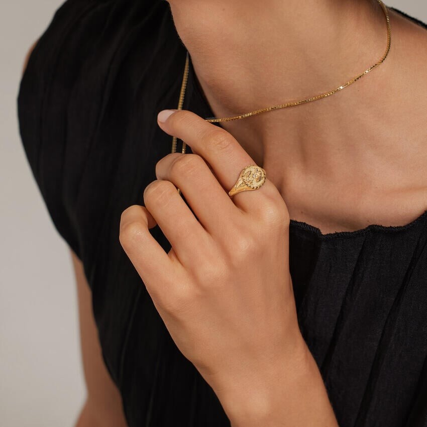 Бренд: Brilliant Earth Рельефный дуэт из двух рыб и звездообразного бриллианта наделяет эту печатку и ее владельца характеристиками водного знака зодиака Рыбы — чуткость, артистичность, щедрость. Оттиск в символической форме знака Рыбы вырезан на фактурной задней стороне самой печатки, а мерцающее созвездие образовано бриллиантами по обеим сторонам дизайна. Sol — это коллекция, которая приглашает вас принять свой внутренний свет. Запечатлевая символизм солнца, она поощряет празднование любви, подлинности и благодарности.