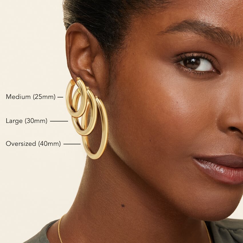 Наш любимый стиль «наряд-навыпуск». Эти серьги-кольца-трубы настолько легкие, насколько это возможно, идеально подходят для повседневной носки и легко надеваются друг на друга. Крупногабаритные: 40 мм в высоту, 4 мм в ширину.