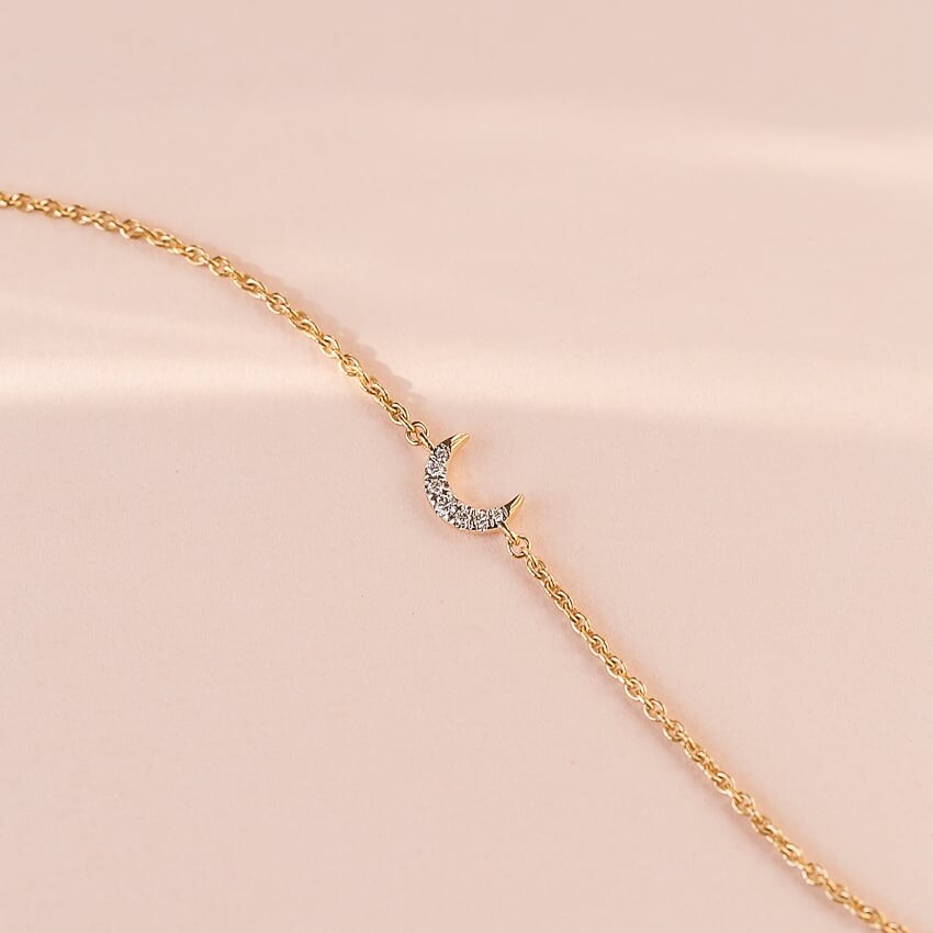 Нежный, но ослепительный, полумесяц с бриллиантовыми акцентами мерцает вдоль запястья. Длина браслета может быть отрегулирована от 6 до 7 дюймов в соответствии с индивидуальными предпочтениями (1/15 общего веса карата).