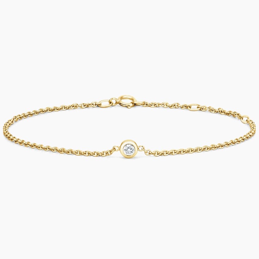 Этот элегантный и неподвластный времени браслет отличается сверкающим бриллиантом в оправе на изящной цепочке из тросов. Длина браслета может быть отрегулирована от 6 до 7 дюймов в соответствии с индивидуальными предпочтениями (1/10 общего веса карата).