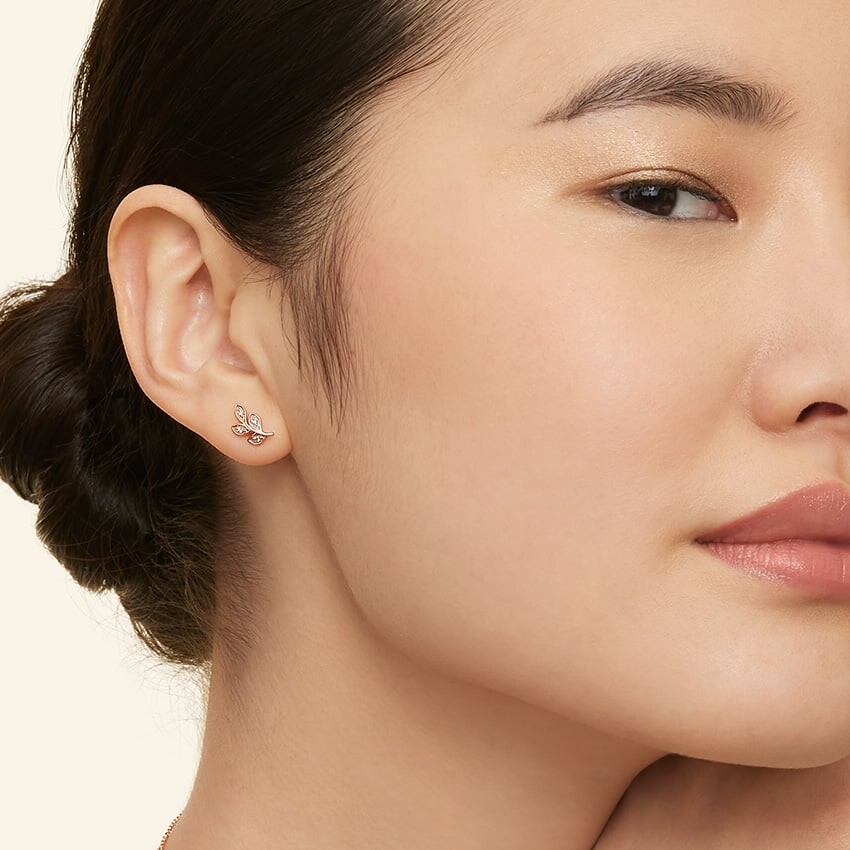 Нежные ветви изгибаются вверх по уху, создавая вид естественной красоты. Сверкающие бриллианты покоятся в блестящем металле в этих потрясающих бриллиантовых серьгах (общий вес 1/15 карата).
