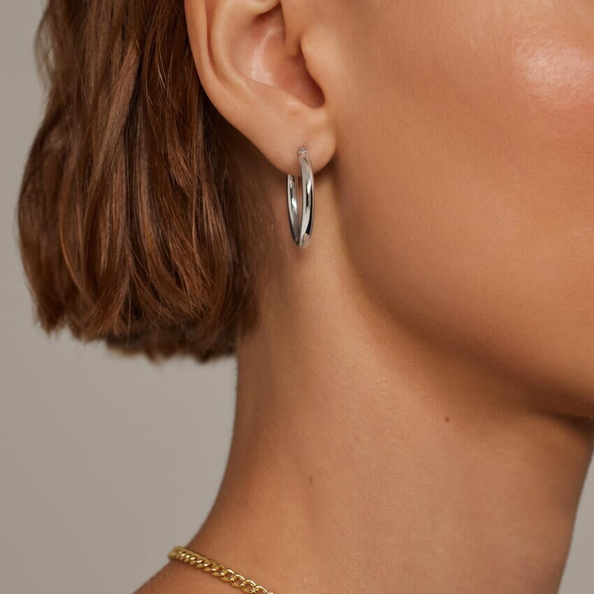 Наш любимый стиль «наряд-навыпуск». Эти серьги-кольца-трубы настолько легкие, насколько это возможно, идеально подходят для повседневной носки и легко надеваются друг на друга. Маленькие: 25 мм в высоту, 3 мм в ширину.
