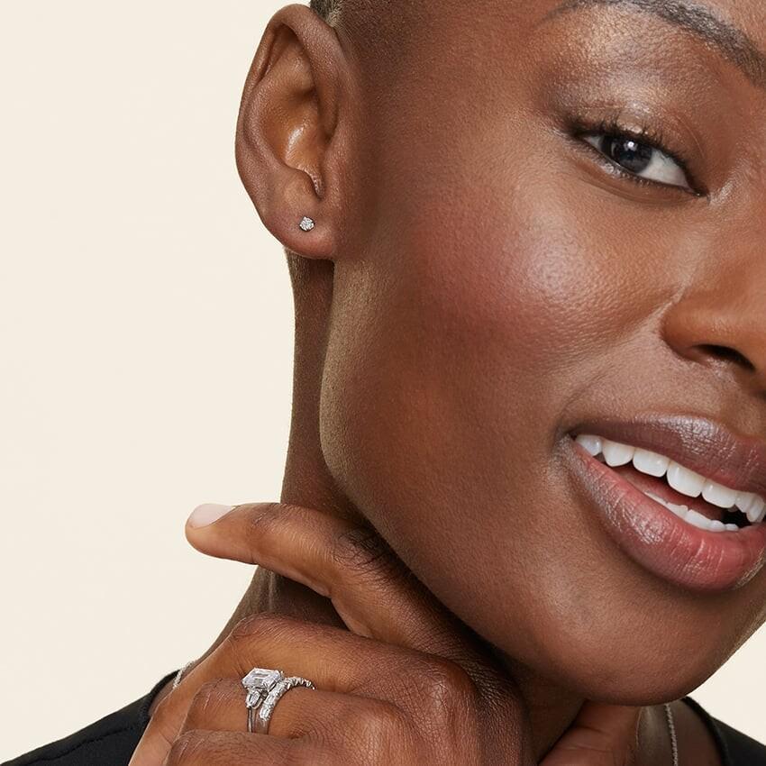 Пара прекрасно подобранных круглых бриллиантов закреплена в классической оправе с выдвижными штифтами для проколов ушей.