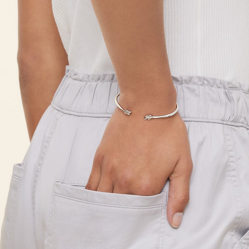 Нежная ветка обвивает запястье сверкающими бриллиантовыми листьями, завершая этот очаровательный открытый дизайн. Этот вдохновленный природой браслет-манжета изготовлен с гибким дизайном для создания идеальной посадки (общий вес 1/10 карата).
