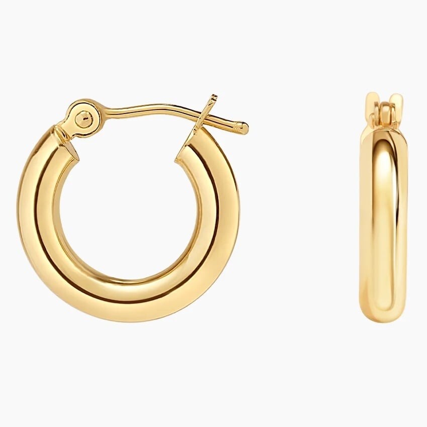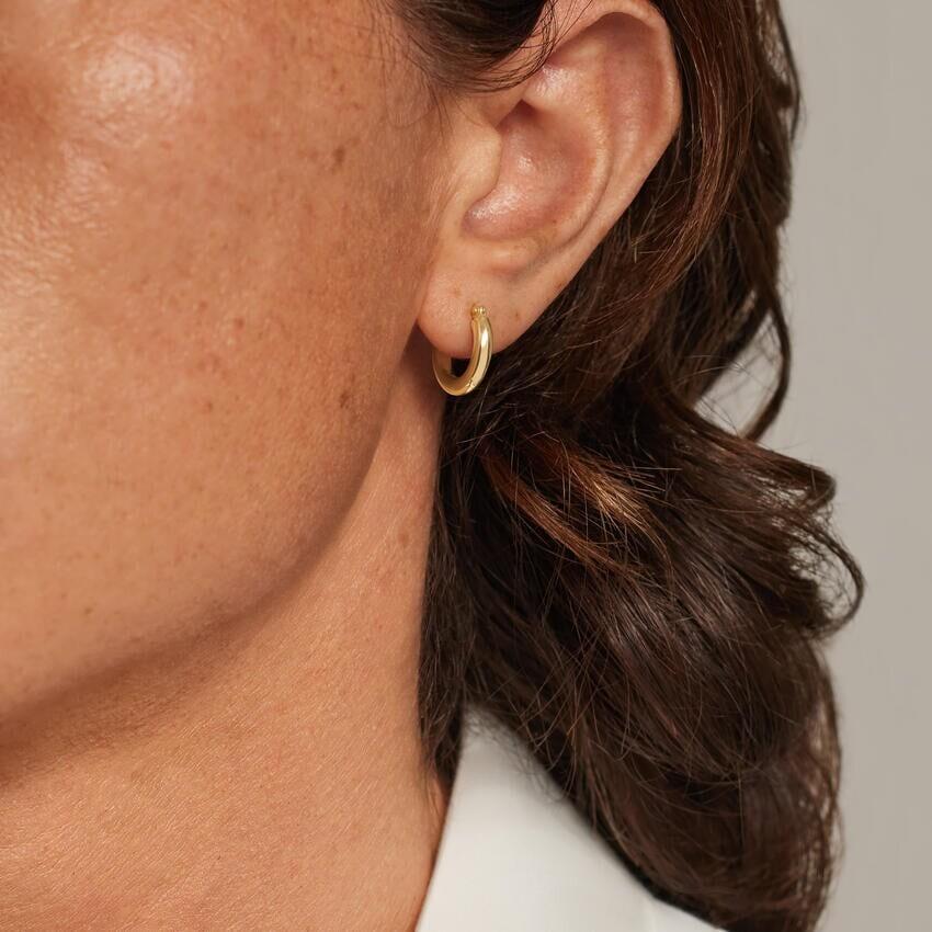 Наш любимый стиль «наряд-или-повседневный». Эти серьги-кольца-трубы настолько легкие, насколько это возможно, идеально подходят для повседневной носки и легко надеваются друг на друга. Huggie: высота 15 мм, ширина 3 мм.