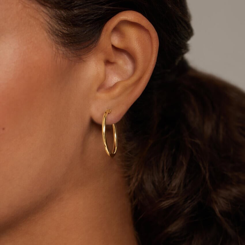 Наш любимый стиль «наряд-навыпуск». Эти серьги-кольца-трубы настолько легкие, насколько это возможно, идеально подходят для повседневной носки и легко надеваются друг на друга. Маленькие: 25 мм в высоту, 2 мм в ширину.
