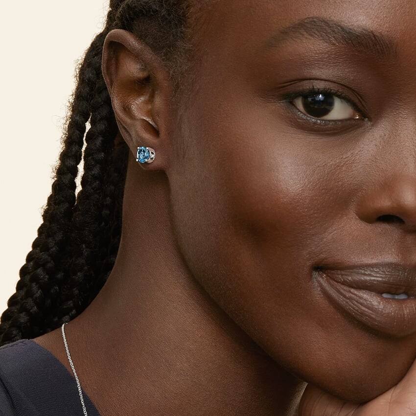 Эти поразительные топазы London Blue, сочетающие в себе моду и классическую изысканность, помещены в удобные оправы-корзинки.