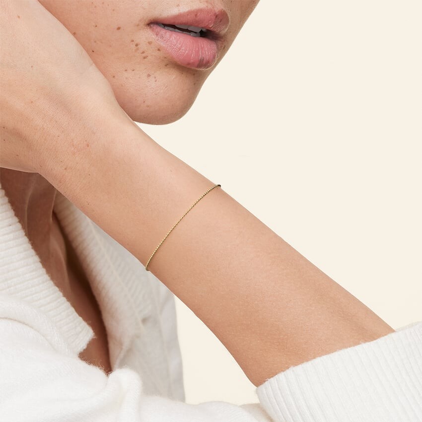 Блестящие металлические бусины обвивают весь этот шикарный и уникальный 6,5-дюймовый браслет, добавляя текстурную изюминку классическому дизайну цепи.