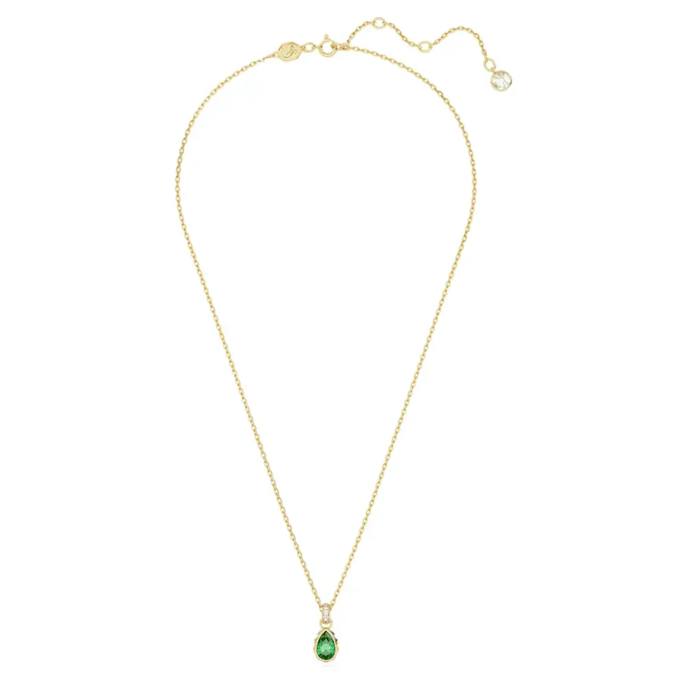 Этот мерцающий кулон из семейства Chroma небольшой, но невероятно красивый. Как капля света, кулон имеет грушевидный центральный камень зеленого цвета в позолоченной оправе, дополненной квадратными прозрачными кристаллами по краям и дужке. Красиво прикрепленный к позолоченной цепочке с круглой каменной деталью на конце и удлинением на 5 см, этот предмет вы можете носить каждый день, что делает его фирменной частью вашего стиля.