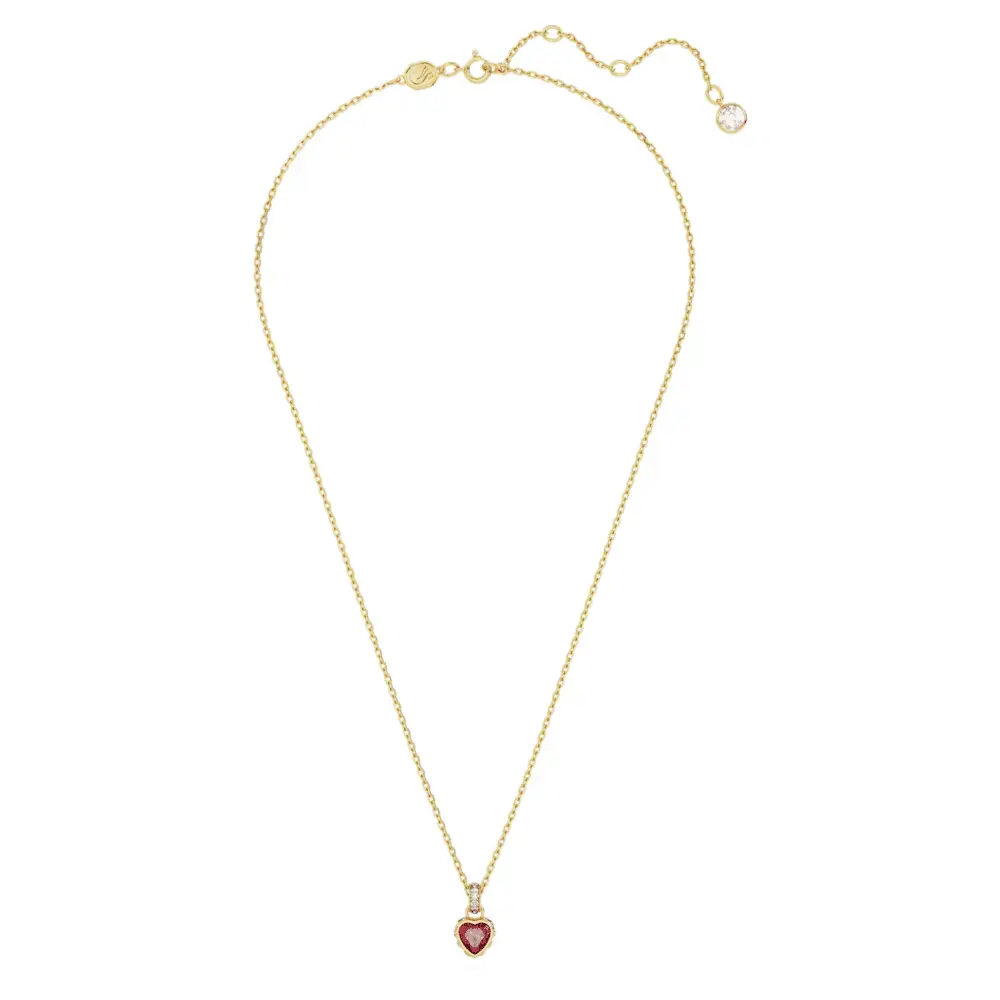 Если вы обожаете украшения в форме сердца, эта подвеска из семейства Chroma просто необходима для вашей коллекции. Красный центральный камень находится в позолоченной оправе, дополненной квадратными прозрачными кристаллами по краям и дужке. Красиво прикрепленная к позолоченной цепочке с круглой каменной деталью на конце и удлинением на 5 см, эта подвеска подойдет для ношения каждый день, что сделает ее фирменной частью вашего стиля.