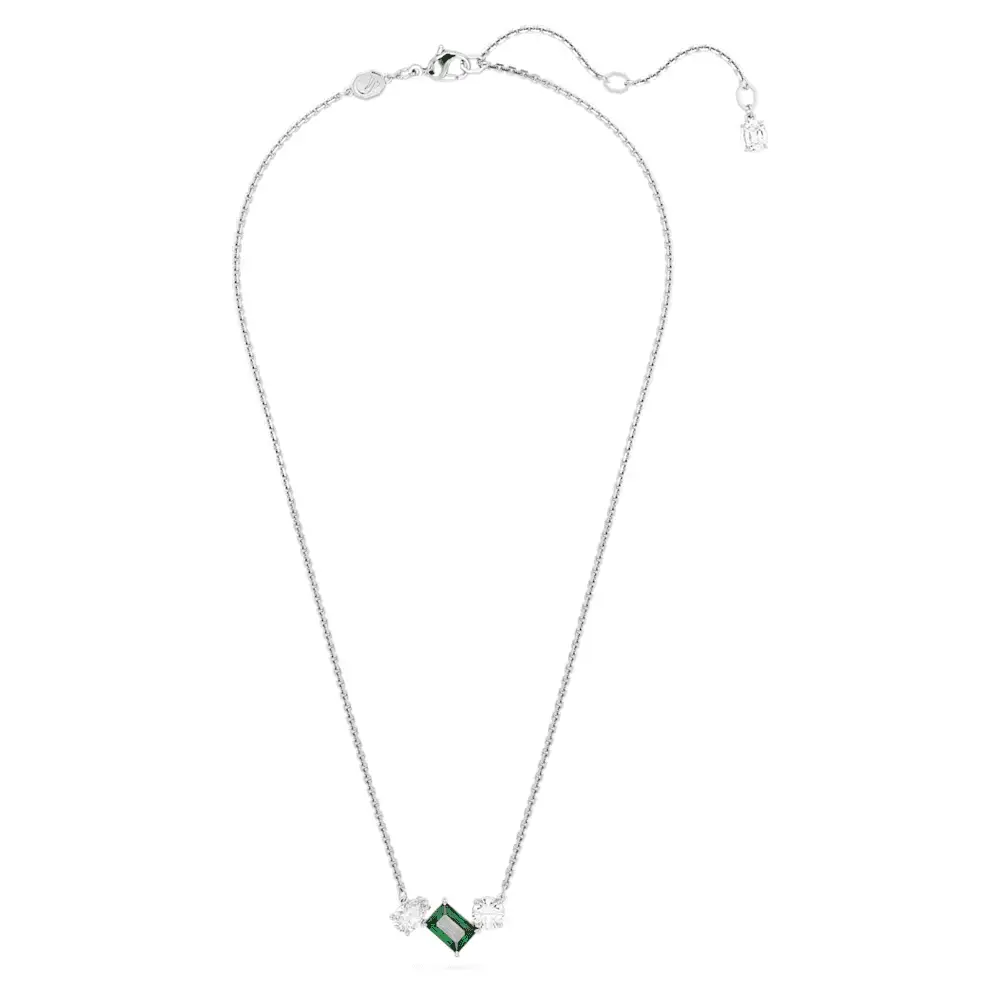 Этот элегантный кулон Mesmera дарит изысканную утонченность благодаря смелому сочетанию огранок и цвета. Надетый на изящную цепочку, дизайн с родиевым покрытием включает трио циркония Swarovski в зубчатой оправе разных форм с сияющим центральным камнем гипнотического зеленого цвета. Чудесный подарок, который подчеркнет любой стиль.