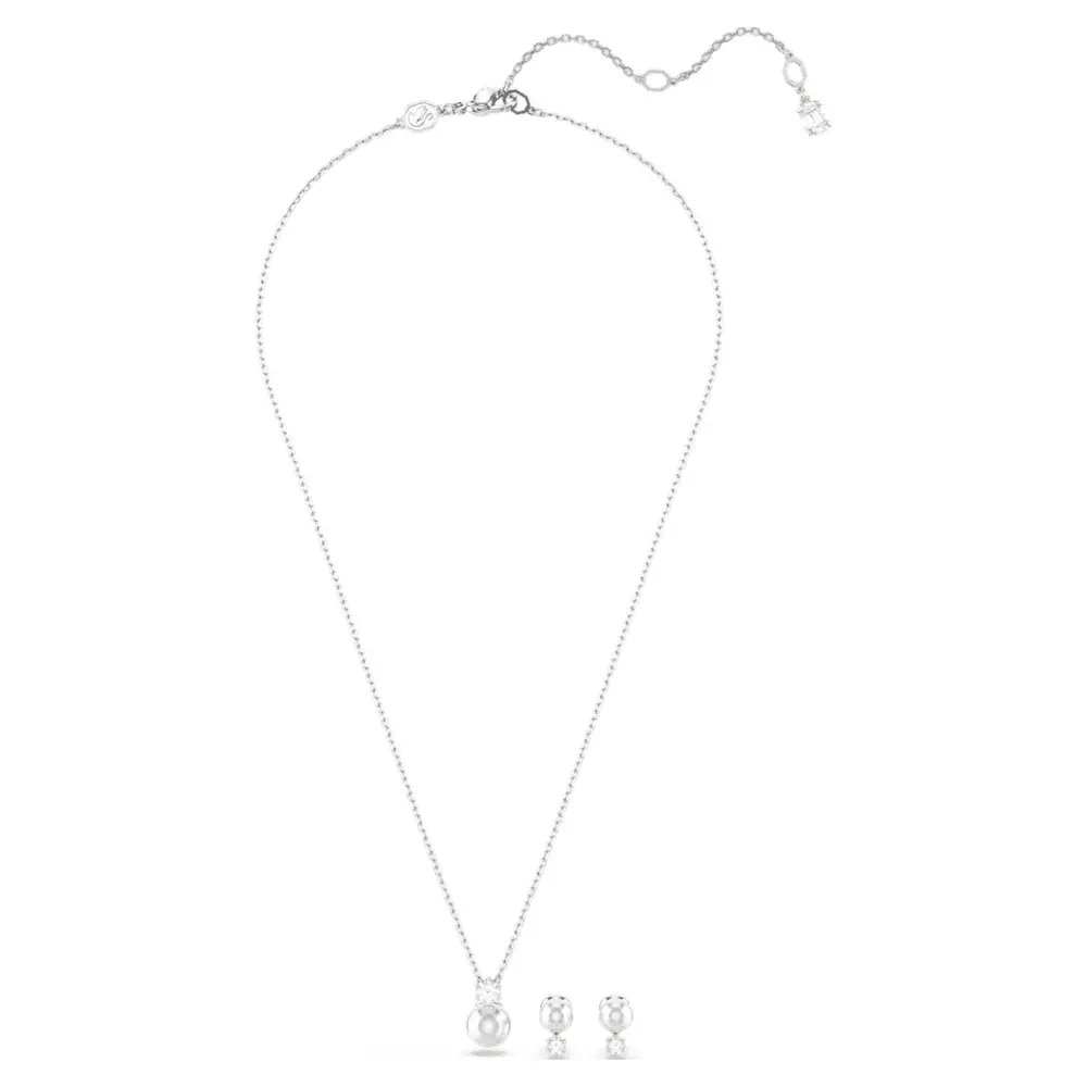 По-настоящему культовый комплект, эта прекрасная пара Matrix включает подвеску и серьги, наполненные сиянием. Подвеска подвешена на цепочке с родиевым покрытием и имеет одну белую жемчужину Swarovski Crystal Pearl и круглый цирконий Swarovski Zirconia. Та же потрясающая комбинация представлена на каждой серьге-гвоздике. Носите с футболкой и джинсами для образа, который легко притягивает взгляд.