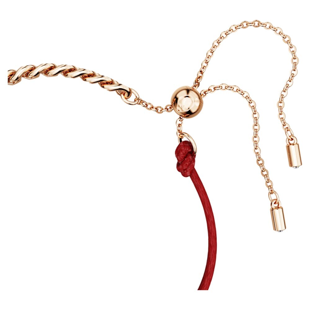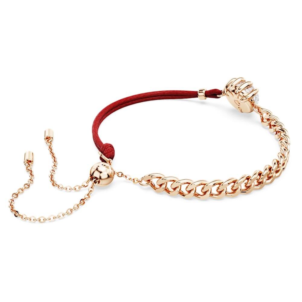 Этот вдохновенный браслет, созданный для года Дракона, является прекрасным примером мастерства Swarovski. Дизайн с покрытием из розового золота имеет центральный коготь дракона, который крепко держит счастливую монету, украшенную паве из прозрачных кристаллов. Вокруг запястья браслет имеет связанную цепочку с одной стороны и красную ткань с другой. Яркое и энергичное, это украшение станет идеальным подарком для любимого человека.