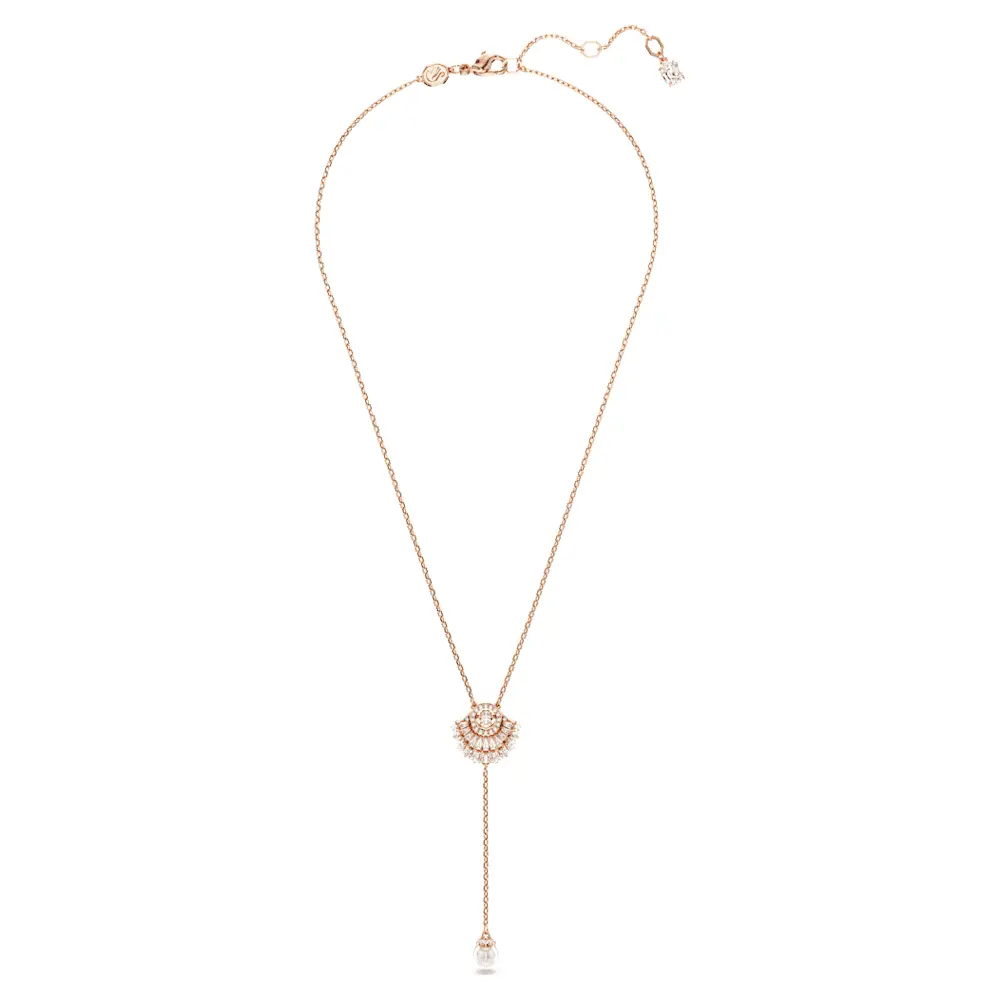 Ощутите спокойствие моря с этим вдохновленным океаном кулоном из серии Idyllia. Ракушка покрыта розовым золотом и украшена массивом прозрачных цирконий Swarovski и прозрачным круглым танцующим кристаллом, который ловит свет. Изделие на тонкой цепочке дополняет одна белая кристальная жемчужина, которая элегантно висит снизу. Спокойное и сияющее дополнение к вашему повседневному стилю.