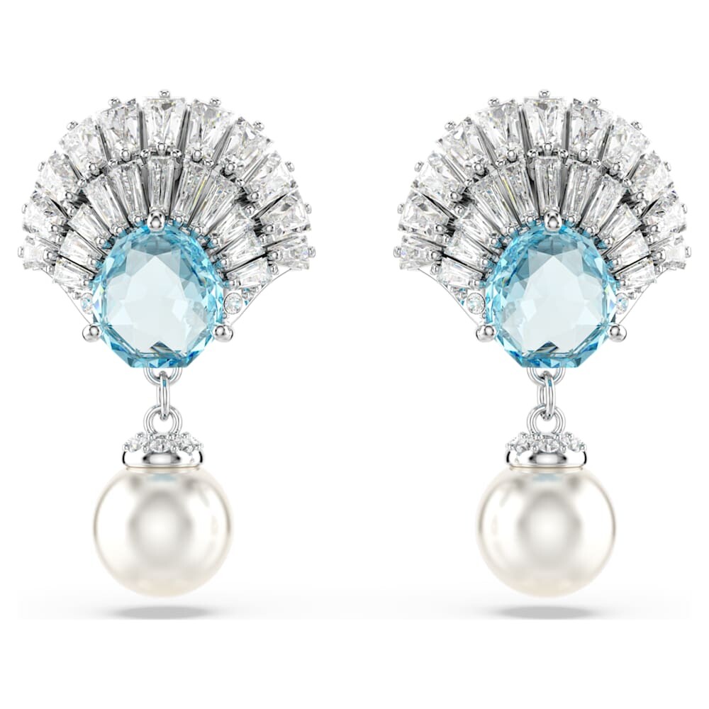 Эти потрясающие серьги Idyllia созданы для элегантного и радостного стиля. Каждая ракушка покрыта родием и украшена массивом прозрачных цирконий Swarovski и ярко-синим центральным кристаллом. Украшения дополнительно украшены одной белой кристальной жемчужиной, которая изящно висит снизу. Гламурный выбор для дня или вечерних мероприятий.