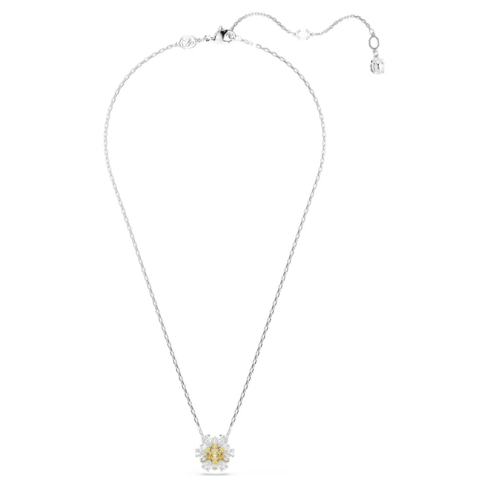 Оживляя природу изысканным мастерством, эта красивая подвеска Idyllia украсит любой наряд. Надетая на длинную и изящную цепочку, эта модель с родиевым покрытием представляет собой яркий цветок, точно выполненный из желтого и прозрачного циркония Swarovski, с поразительным эффектом градиента для дополнительной современности. Освежающее украшение, которое будет светиться в течение всего дня.