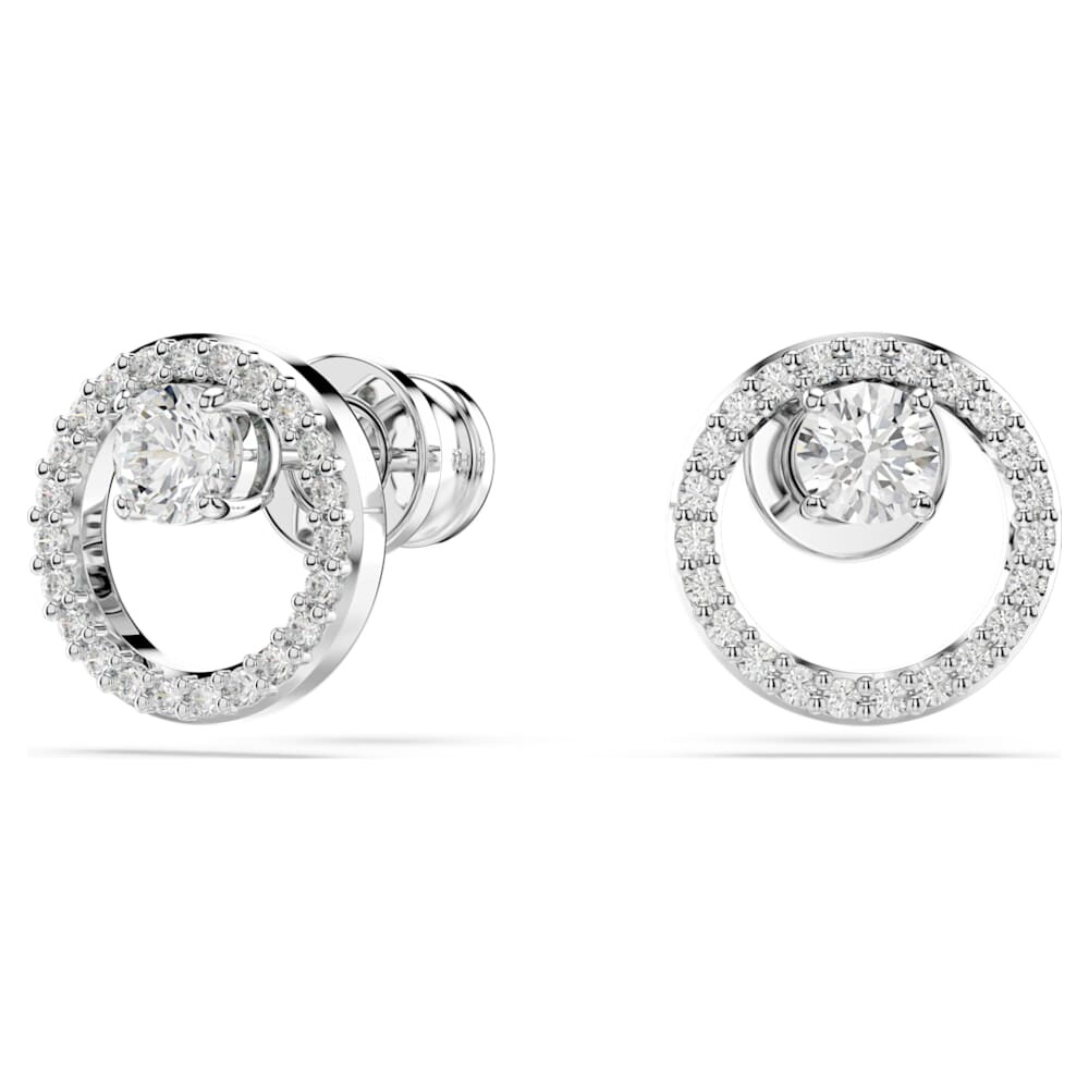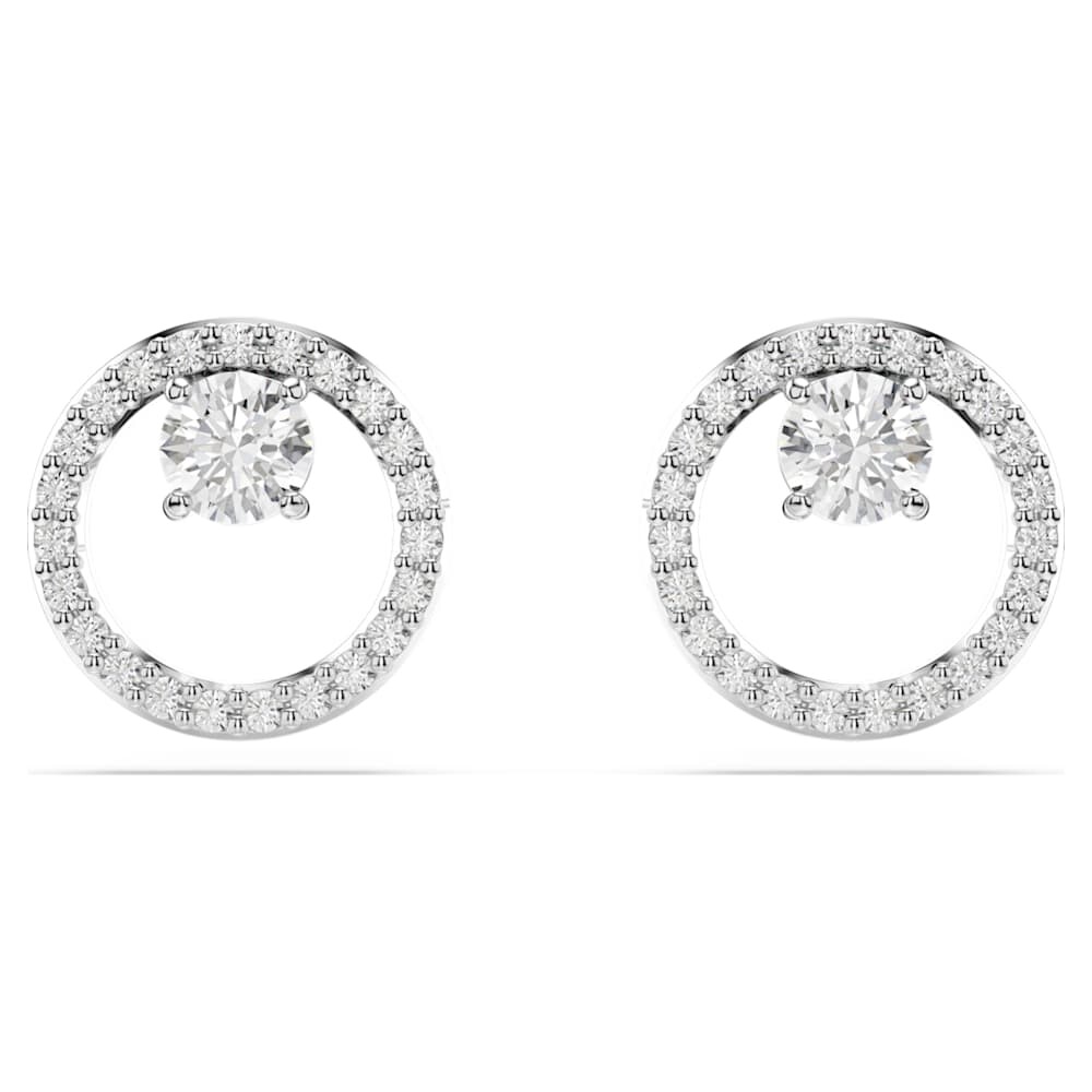 Эти изысканные круглые гвоздики источают вечную элегантность. Каждая проколотая деталь покрыта родием и имеет центральное кольцо из прозрачных цирконий Swarovski, а также одиночный цирконий Swarovski в зубчатой оправе, расположенный посередине. Усильте драматизм, сочетая с соответствующим кулоном Constella.