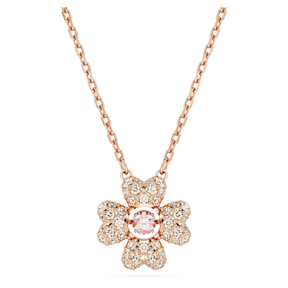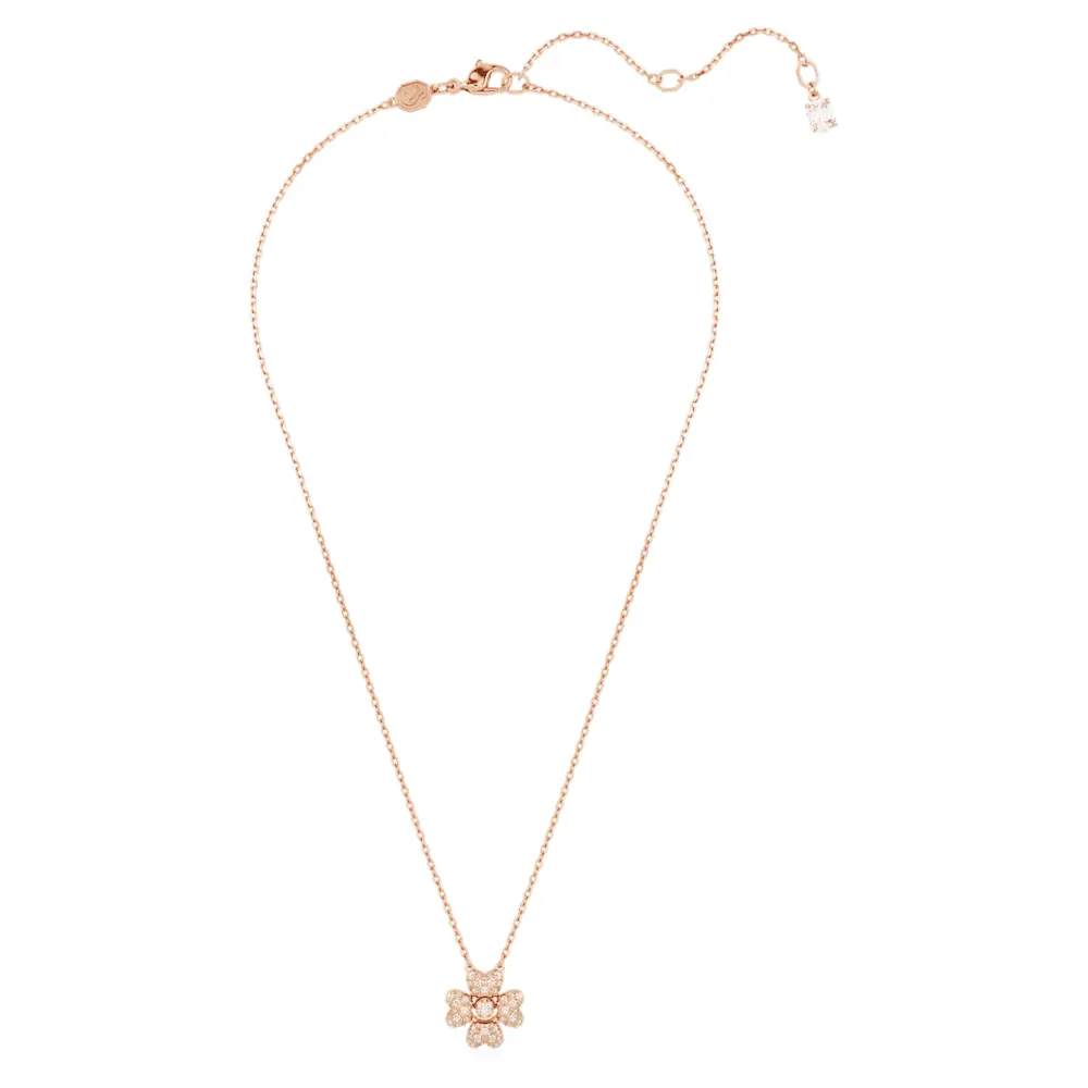 Украсьте свой образ этой сияющей подвеской, вдохновленной природой. Дизайн с покрытием из розового золота имеет мотив клевера с удачей, выполненный с центральным розовым цирконием Swarovski и четырьмя листьями, украшенными паве из прозрачных кристаллов. Игривое и чудесное ожерелье, которое можно носить каждый день.