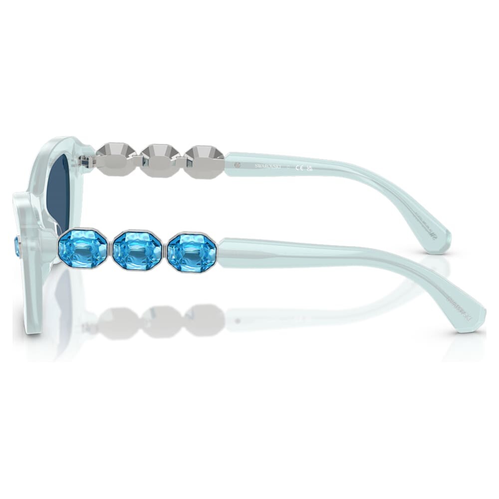 Добавьте цвета в свой повседневный стиль с этими красивыми яркими солнцезащитными очками. Вдохновленные нашим культовым семейством Millenia, узкие оправы-бабочки изготовлены из светло-голубого ацетата и оснащены соответствующими однотонными синими линзами. На каждой дужке три эксклюзивных кристалла помещены в изысканную металлическую оправу, образуя фирменную восьмиугольную форму Swarovski. Носите эту пару, чтобы излучать радость, будь то дождь или солнце.