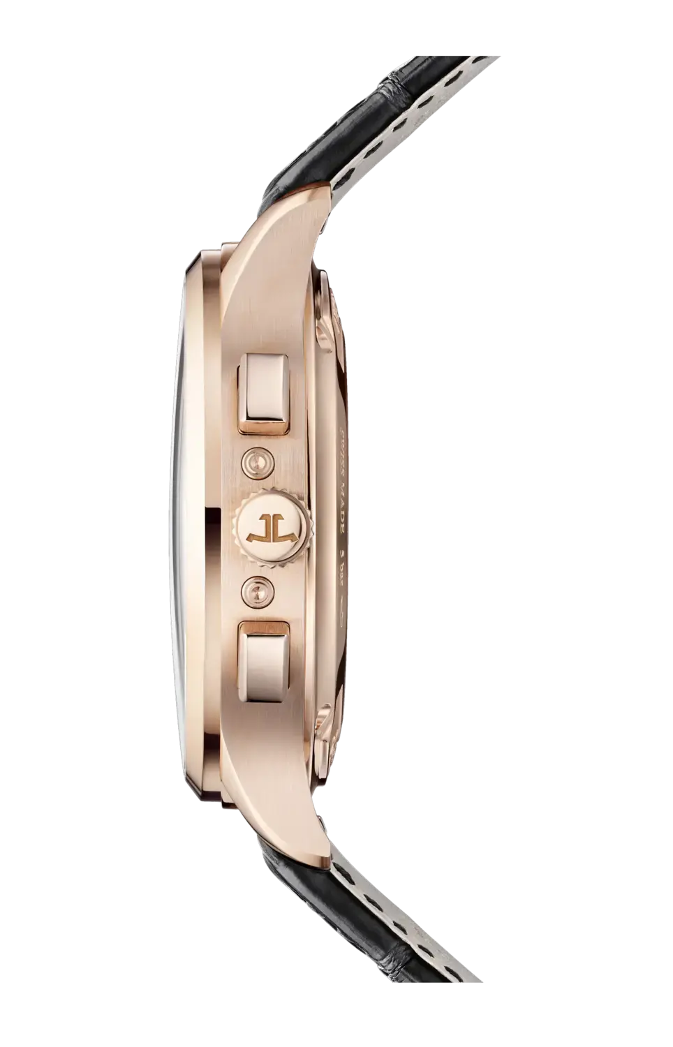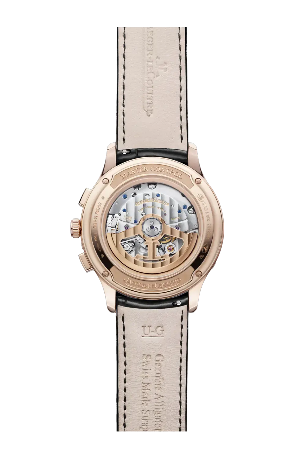Бренд: Jaeger-Lecoultre Черный, золотой и красный. Три цвета украшают календарь Master Control Chronograph с его современным черным циферблатом с узором «солнечные лучи». Помимо наличия кодов, которые делают коллекцию Master Control эталоном изысканности часового искусства, эта новая версия из розового золота демонстрирует элегантный и смелый стиль. Красный цвет выделяется на хронографе, малых секундах и счетчиках фаз Луны, на центральных цифрах даты и на шкале пульсометра. Часы Master Control Chronograph Calendar очень приятны в ношении и оснащены тщательно продуманным калибром 759, полностью разработанным, изготовленным и собранным на месте.
