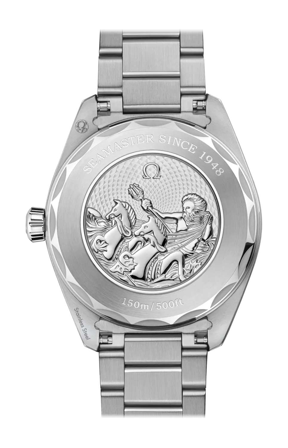 Бренд: Omega Этот мировой таймер диаметром 43 мм с корпусом из полированной и сатинированной нержавеющей стали поставляется в комплекте с браслетом в тон. Циферблат цвета Omega Summer Blue с сатинировкой «солнечные лучи» имеет градиентную отделку, отражающую уровень водостойкости часов, и включает вертикальный мотив из тикового дерева, а также вертикальный мотив из тикового дерева. Стрелки и индексы с родиевым покрытием и синим люминесцентным покрытием. Циферблат окружен кругом, на котором серебром напечатаны пункты назначения. В центре циферблата расположено стеклянное кольцо с 24-часовой шкалой, в котором светло-голубой цвет обозначает день, а темно-синий – ночь. Изображение Земли с голубым океаном и рельефными континентами получено путем лазерной абляции на титановой пластине 5-го класса. При повороте часов обнаруживается напечатанный памятный логотип Seamaster, на котором изображен Посейдон с трезубцем и двумя морскими коньками: оригинальный логотип Omega 1956 года. присоединяется к нынешнему. За задней крышкой находится коаксиальный хронометр Omega Co-Axial Master Chronometer, калибр 8938.