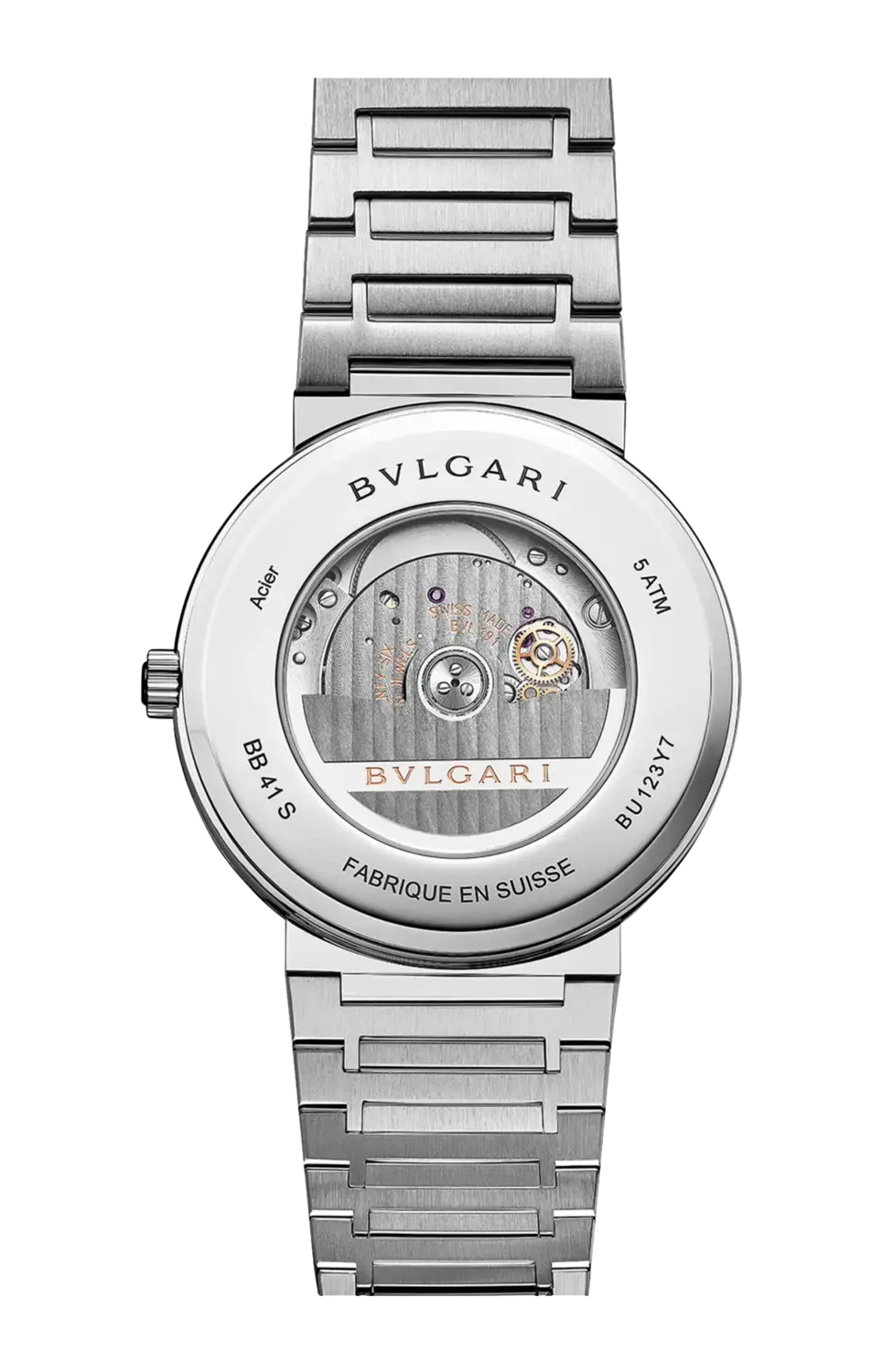 Часы Bulgari Bulgari, мануфактурный механизм, автоматический завод и указатель даты, стальной корпус и браслет, синий циферблат.