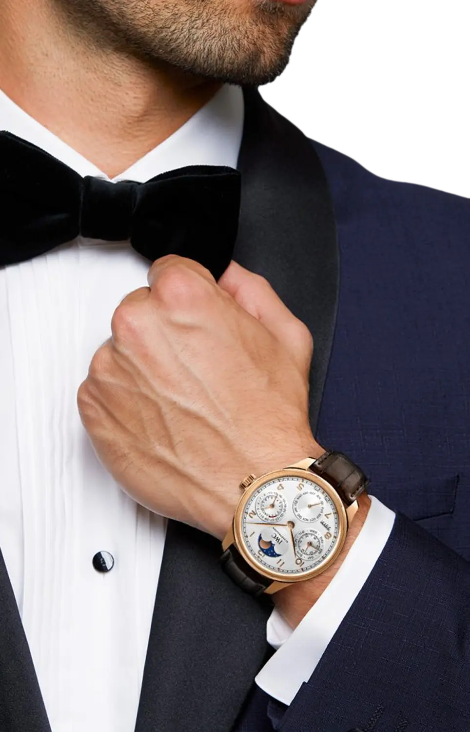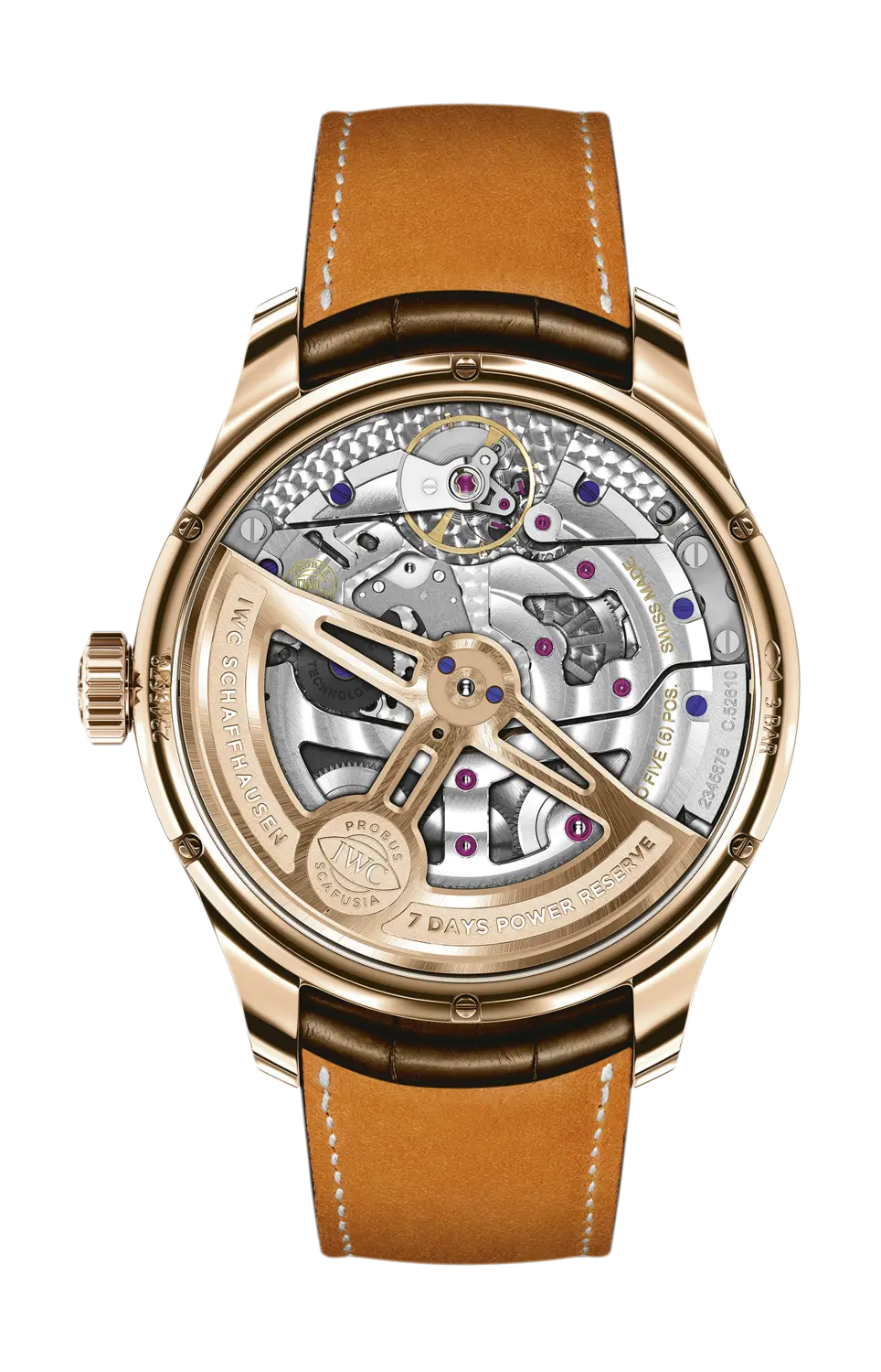 Бренд: Iwc Schaffhausen Отображение фазы Луны в португальском вечном календаре отличается всего на 1 день за 577,5 лет от фактической фазы Луны. Элегантные часы не оставляют невыполненными практически ни одно желание. Он оснащен такими функциями, как вечный календарь, окошко, показывающее год в четырехзначном формате, и 7-дневный автоматический механизм с пеллатонным заводом. Четыре дополнительных циферблата на посеребренном циферблате отображают фазу луны, дату, месяц и день, запас хода и малую секундную стрелку. Эти часы оснащены механизмом IWC семейства калибров 52000 с ротором из цельного красного золота и воронеными винтами. Часы из 18-каратного розового золота имеют изогнутое переднее стекло и темно-коричневый ремешок из кожи аллигатора.