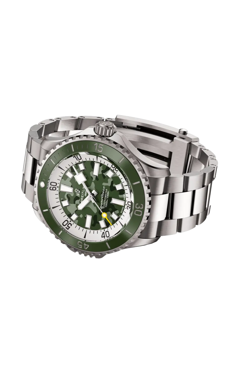 Бренд: Breitling Супер производительность для всех водных видов спорта. В 1960-х годах новый вид спорта – подводное плавание – был в моде. Для дайверов хронометраж был важен, и компания Breitling стремилась предоставить им максимально точные часы для дайвинга, исключив любые функции, которые не обеспечивали жизненно важные потребности под водой. Эти упрощенные часы назывались суперокеанскими замедленными движениями. Чистые линии, сплошные люминесцентные индексы, квадратные стрелки и ярко контрастирующее кольцо циферблата остались – и все это ради максимальной читаемости. Практичный? Да, но что людям влюбилось, так это внешний вид. Модель Superocean Automatic 46 Super Diver повторяет коды дизайна, прославленные замедленной съемкой, добавляя современные функции, такие как безель, инкрустированный устойчивой к царапинам матовой керамикой, и циферблаты камуфляжной расцветки. Большие стрелки и люминесцентные индексы Super-luminova обеспечивают легкое считывание показаний под водой. Часы водонепроницаемы до 1000 м, а также устойчивы к ударам, песку и соленой воде. Но у этих часов есть и множество других особенностей: внутренний корпус из мягкого железа исключает воздействие магнитных полей, а вращающийся в обоих направлениях безель надежно защищается застежкой на левой стороне корпуса. Два варианта ремешка (резиновый и титановый браслет) оснащены раскладывающейся застежкой для точной регулировки до 15 мм, что позволяет легко надевать ремешок на узкие куртки или гидрокостюмы. Самое приятное то, что это уже не просто часы для дайвинга: они подходят для серфинга, плавания, посещения пляжного бара и демонстрации их на ужине. Superocean идеально сочетает в себе ностальгию по своему наследию и свежий новый облик.